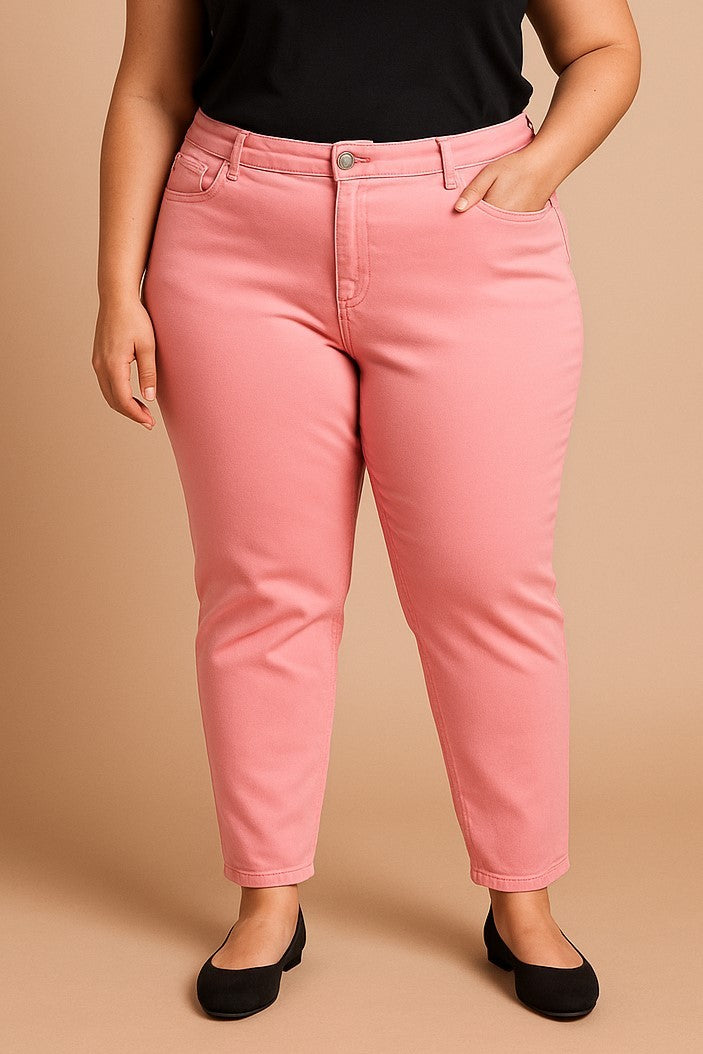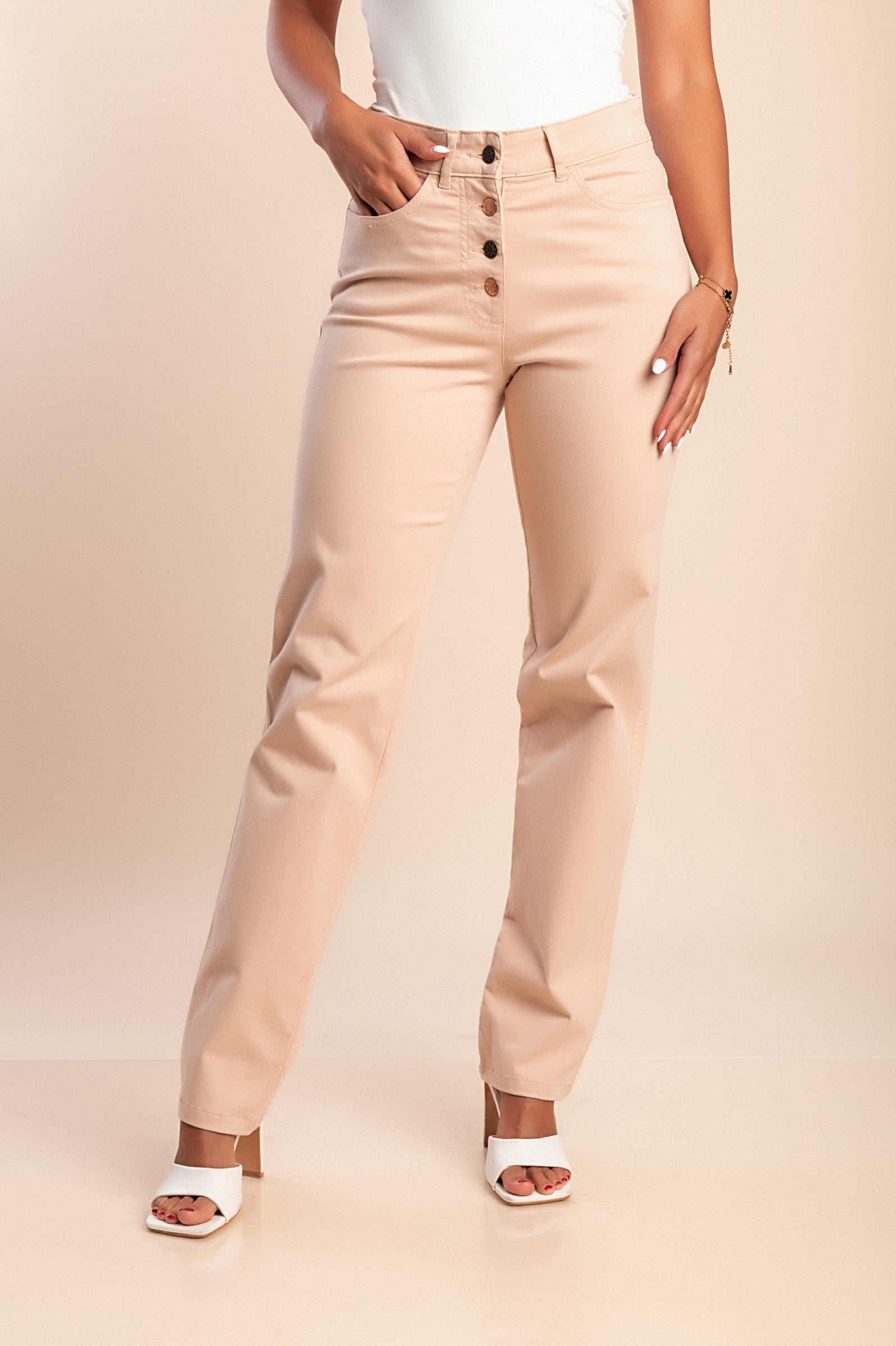Pantaloni taglie forti con bottoni, rosa chiaro