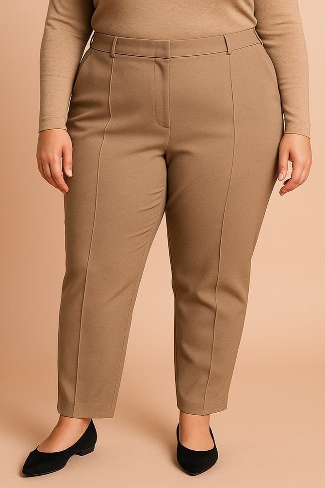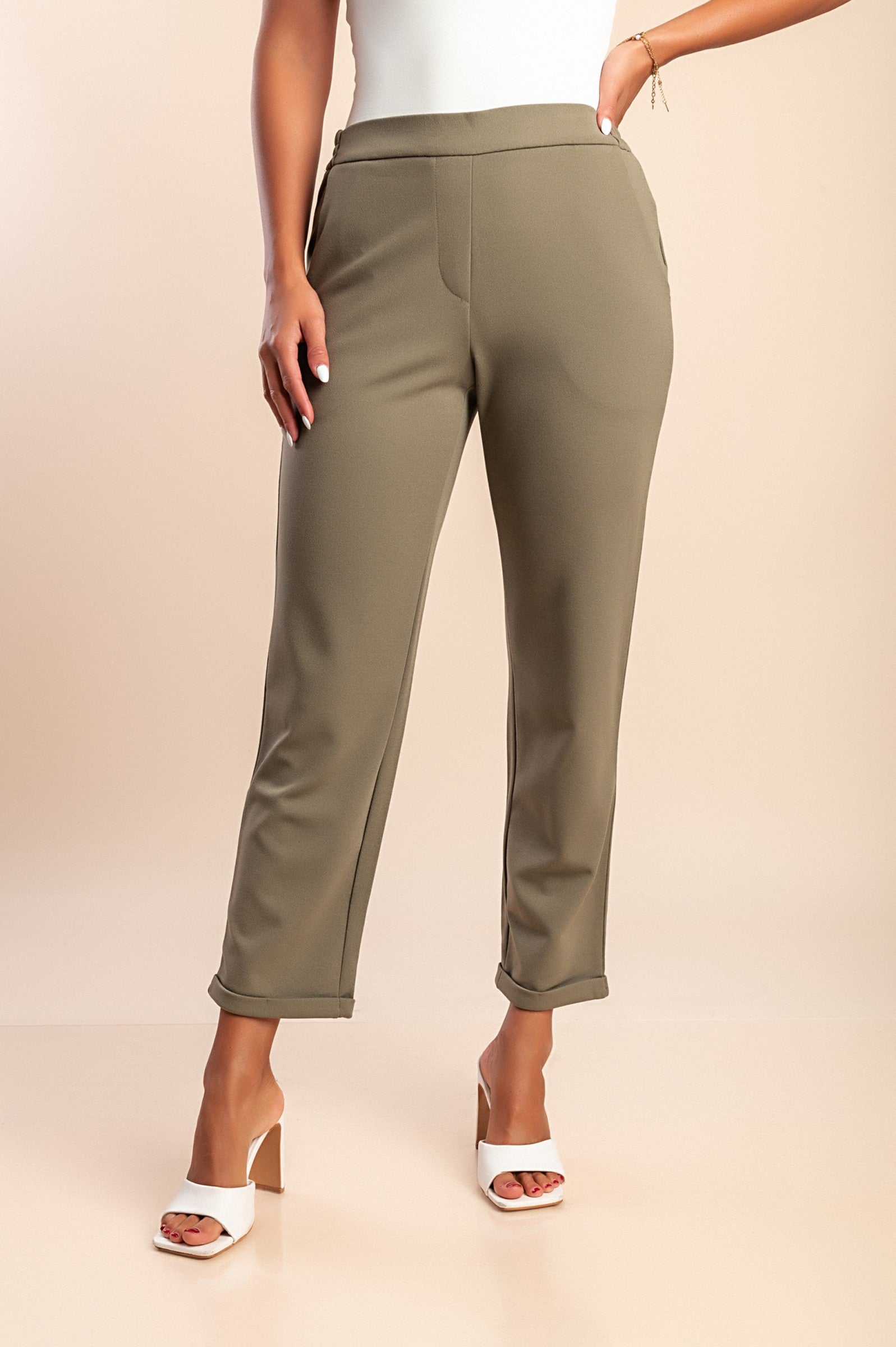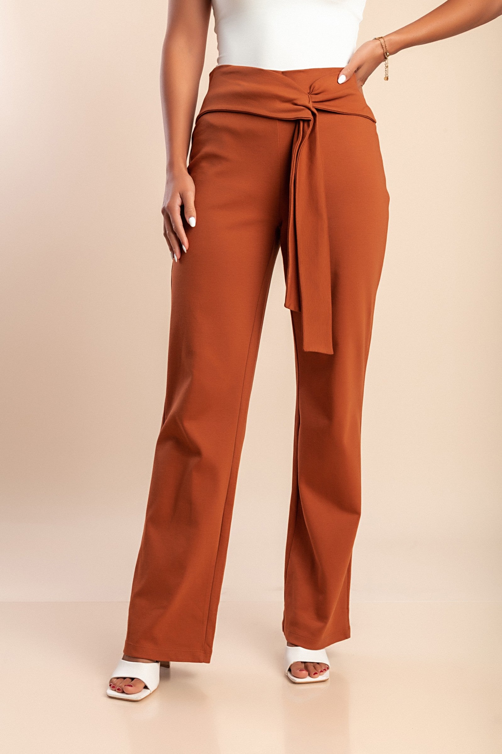Pantaloni eleganti in cotone con nodo decorativo, cammello