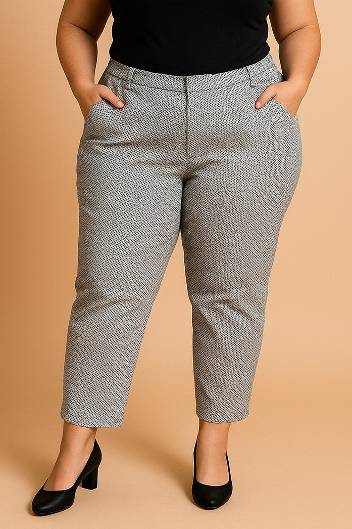 Pantaloni in cotone taglie forti con stampa, bianchi e neri