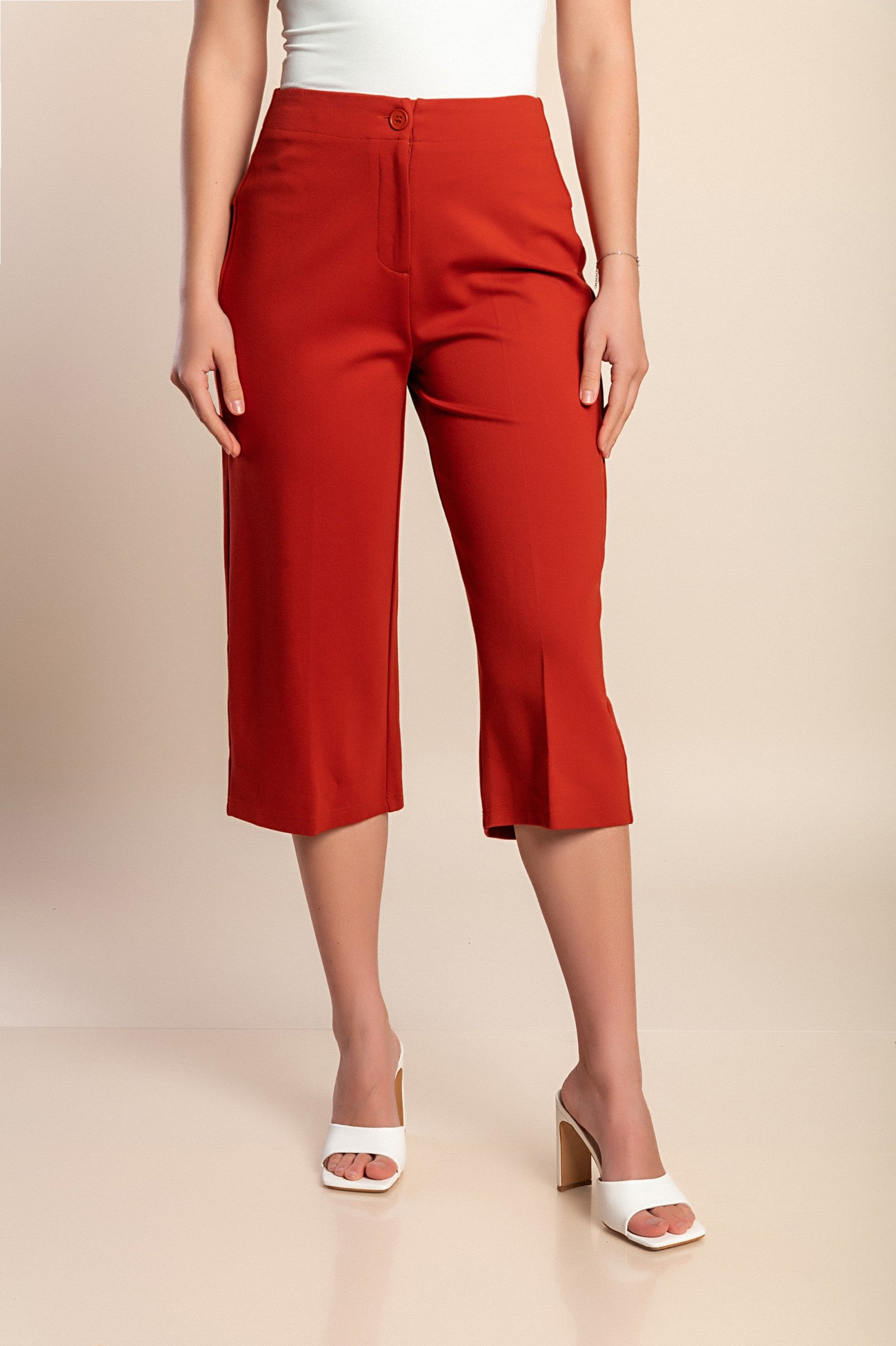 Pantaloni taglie forti 7/8 con stampa a quadri, marrone-rosso