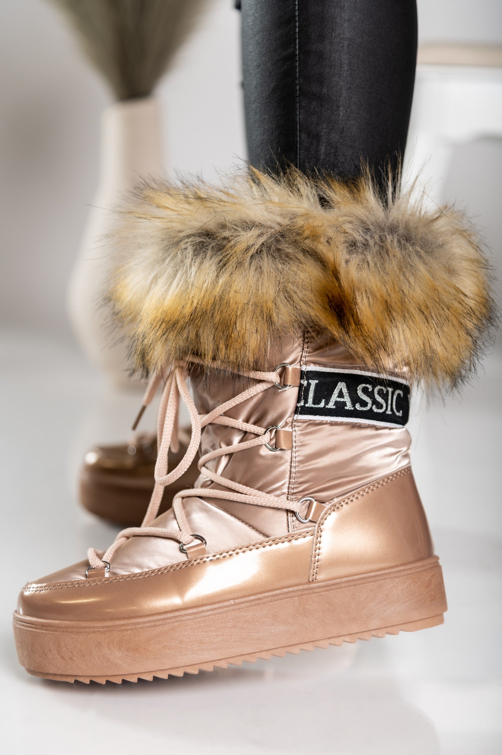 Stivaletti con strisce decorative, beige