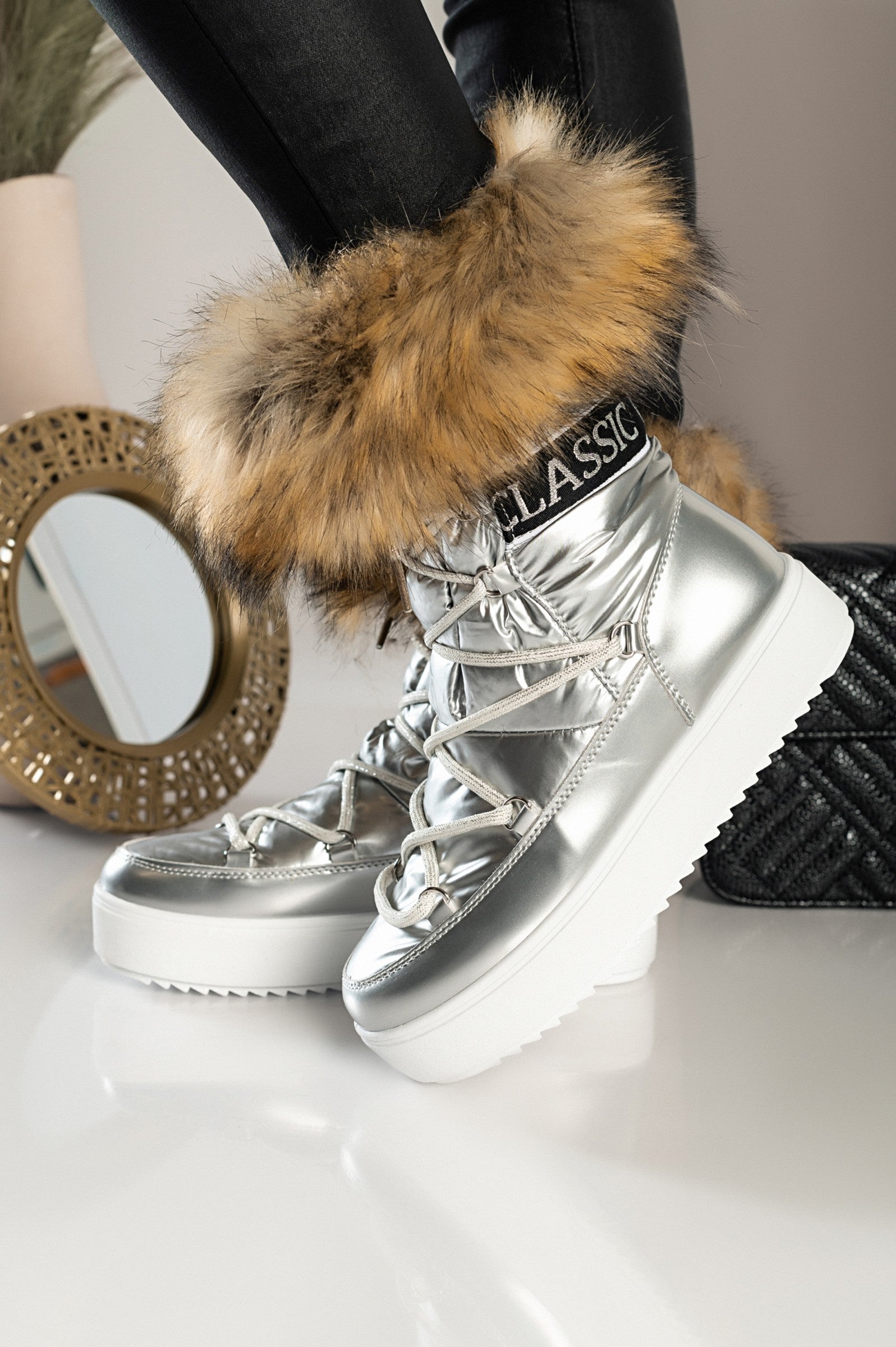 Stivaletto con eco-pelliccia Sutera, nero
