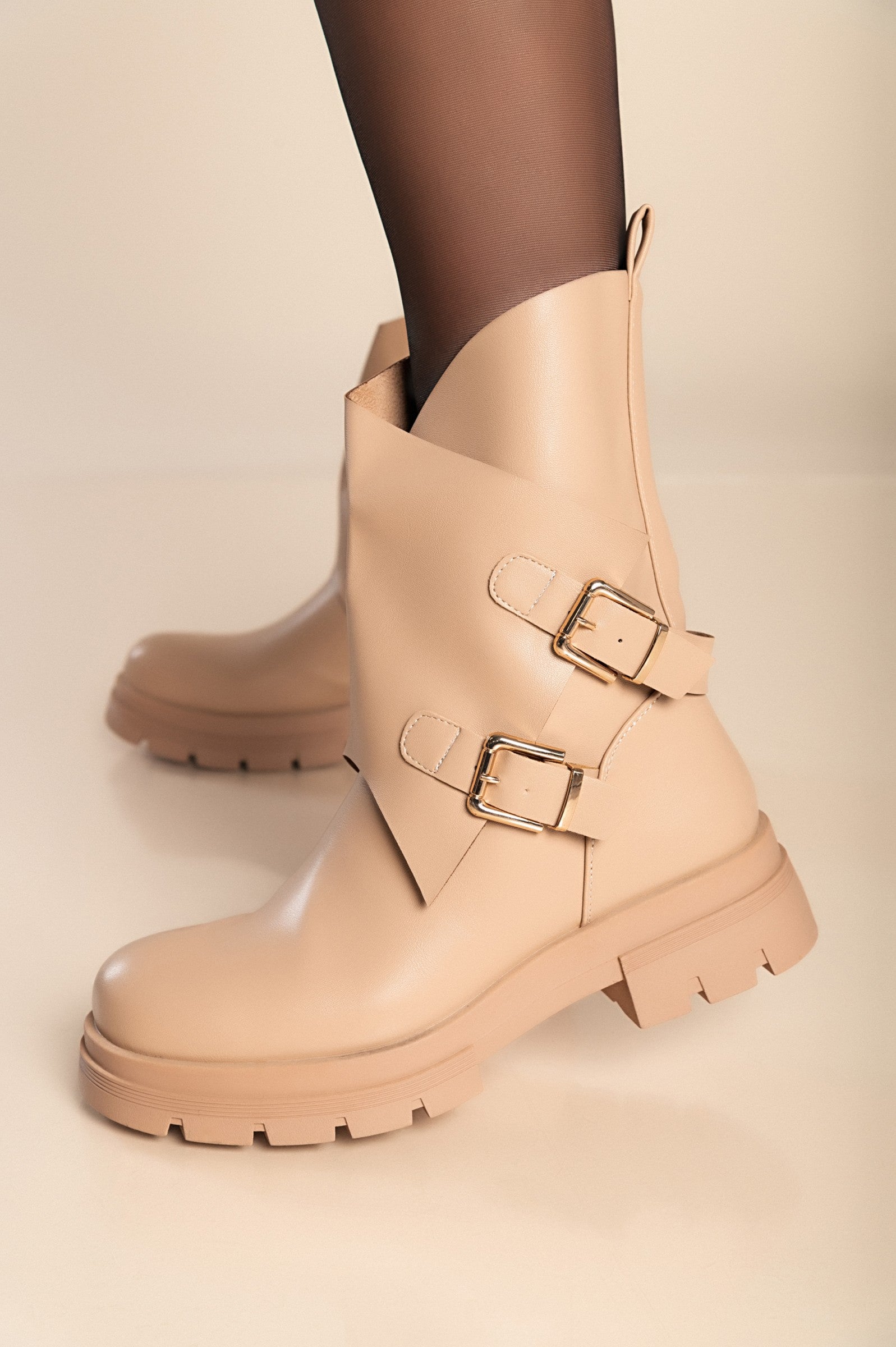 Stivaletti con lacci, beige