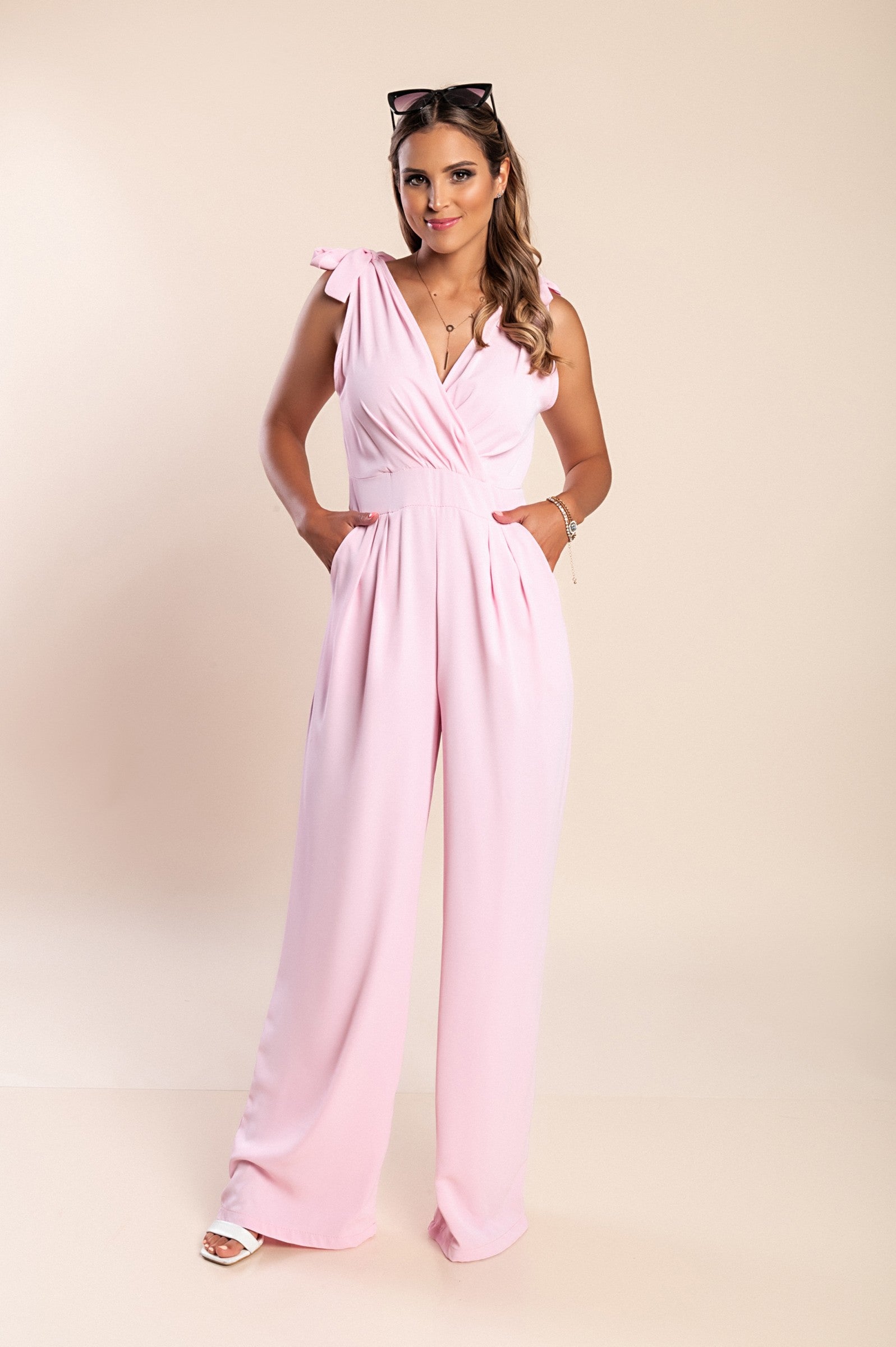 Tuta elegante senza maniche, colore rosa chiaro