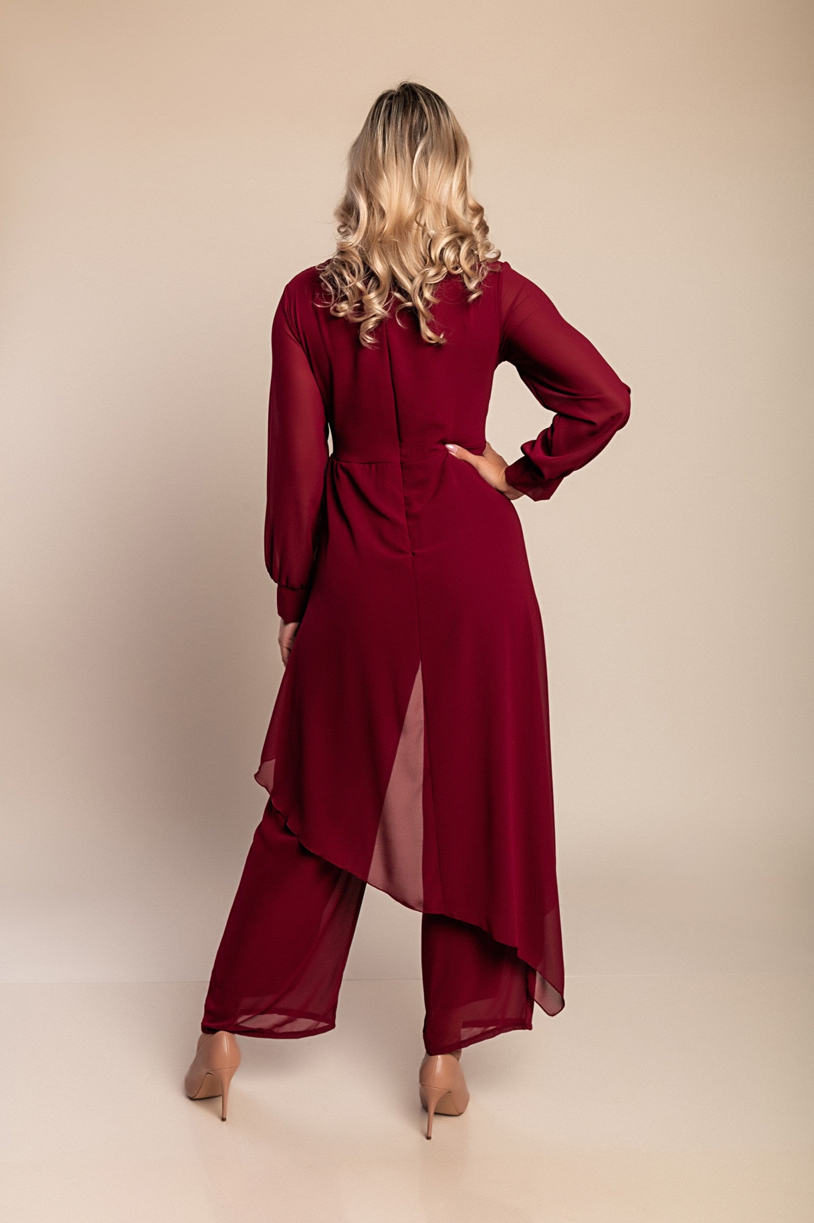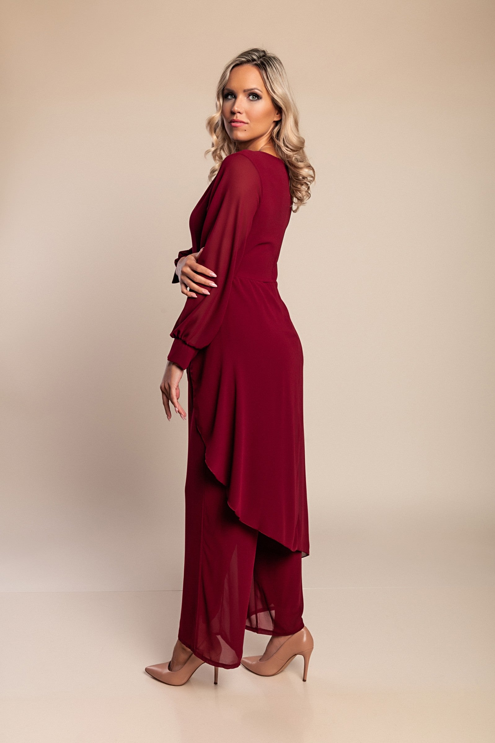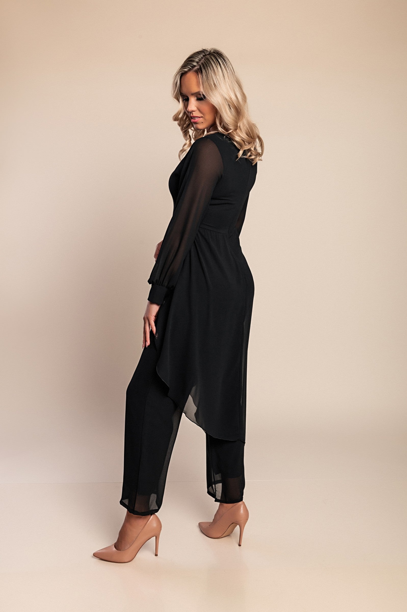 L'elegante tuta è realizzata in tessuto di alta qualità che offre un comfort perfetto. La parte superiore ha una scollatura rotonda e maniche lunghe realizzate in tessuto trasparente. Pantaloni lunghi con tessuto decorativo trasparente. Codice articolo: 20831 Colore dell'articolo: blu scuro