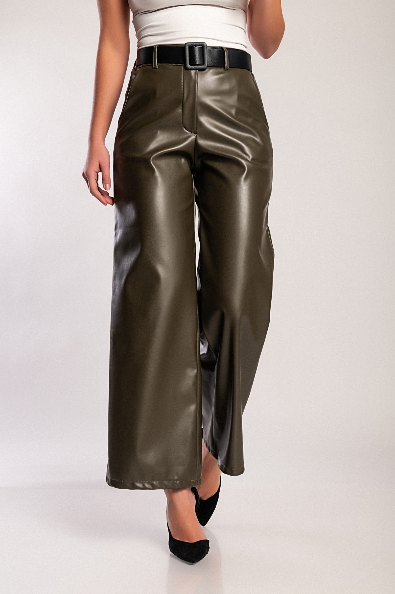 Pantaloni in similpelle, oliva