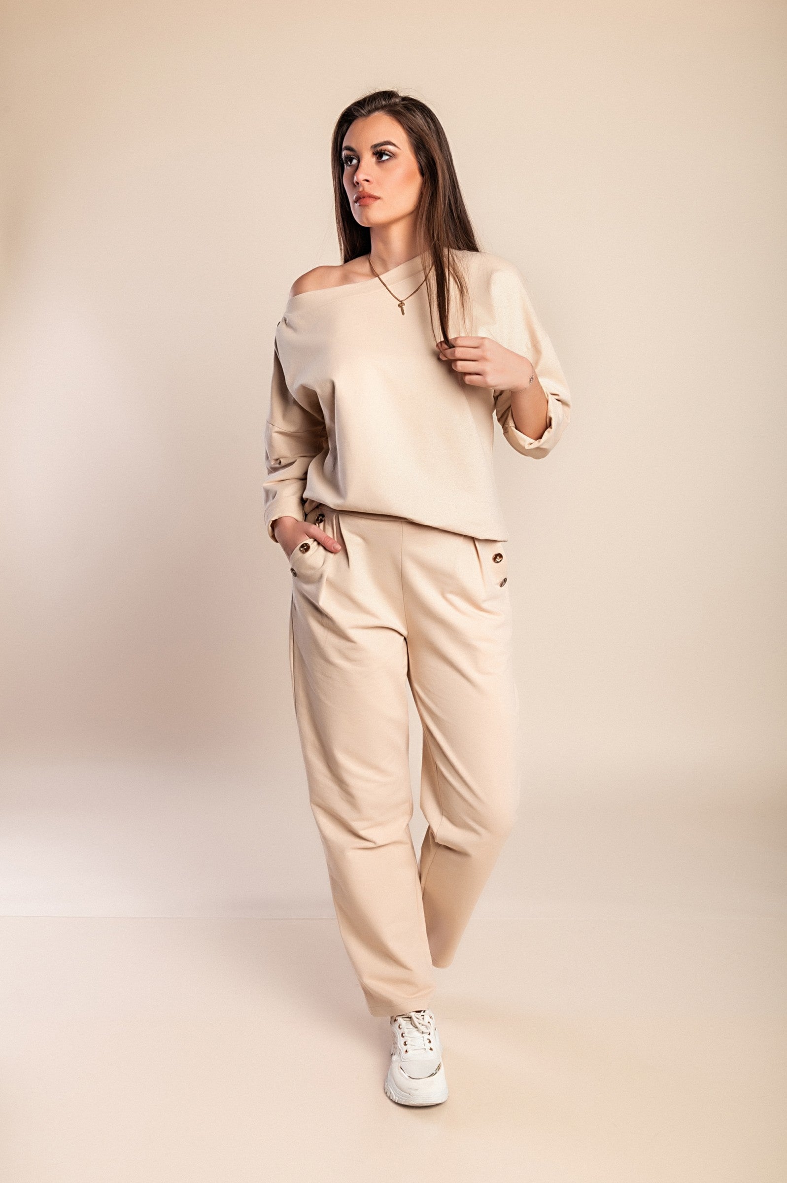 Completo due pezzi in cotone, beige