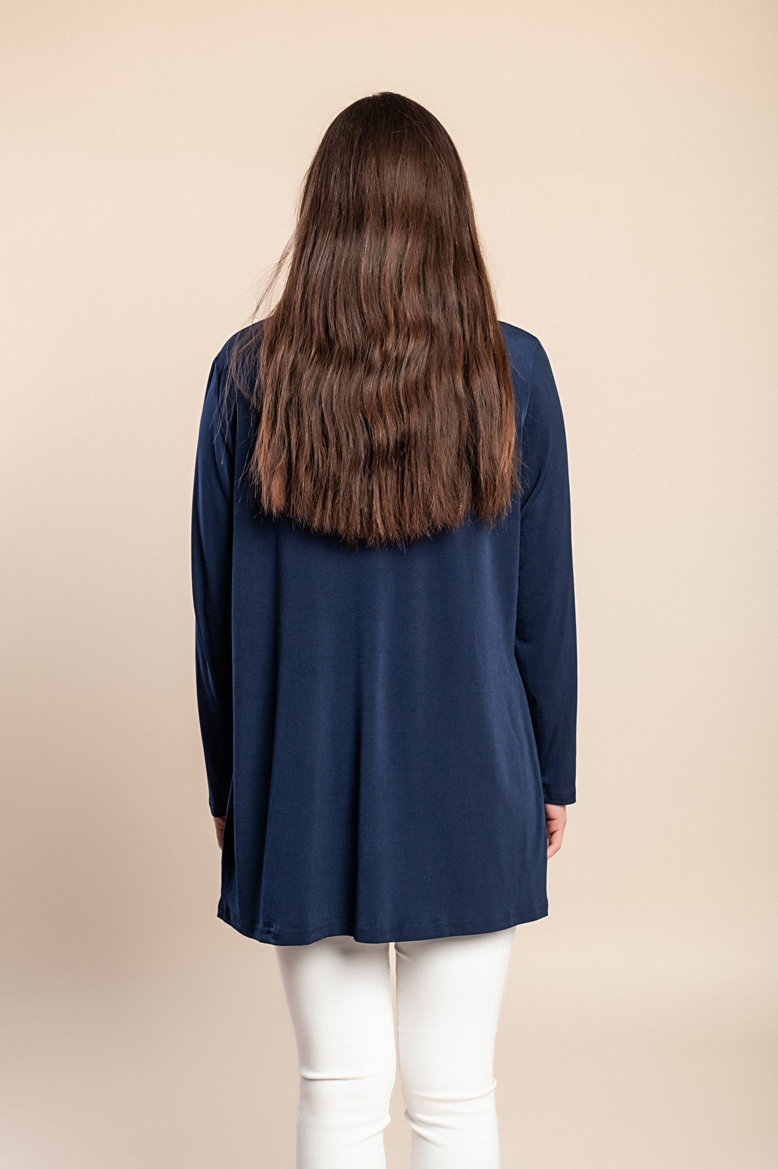 Cardigan a maniche lunghe taglie forti, blu scuro
