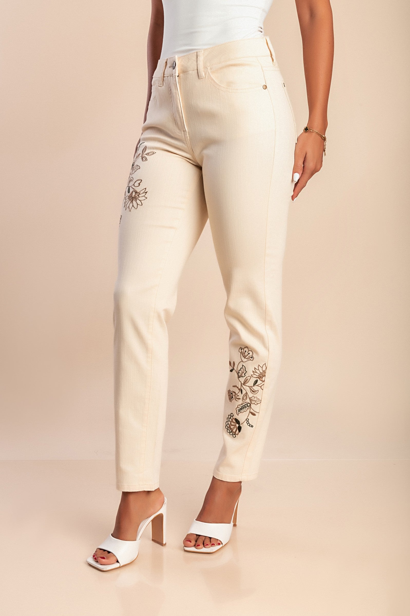 Pantaloni in cotone con ricamo, beige