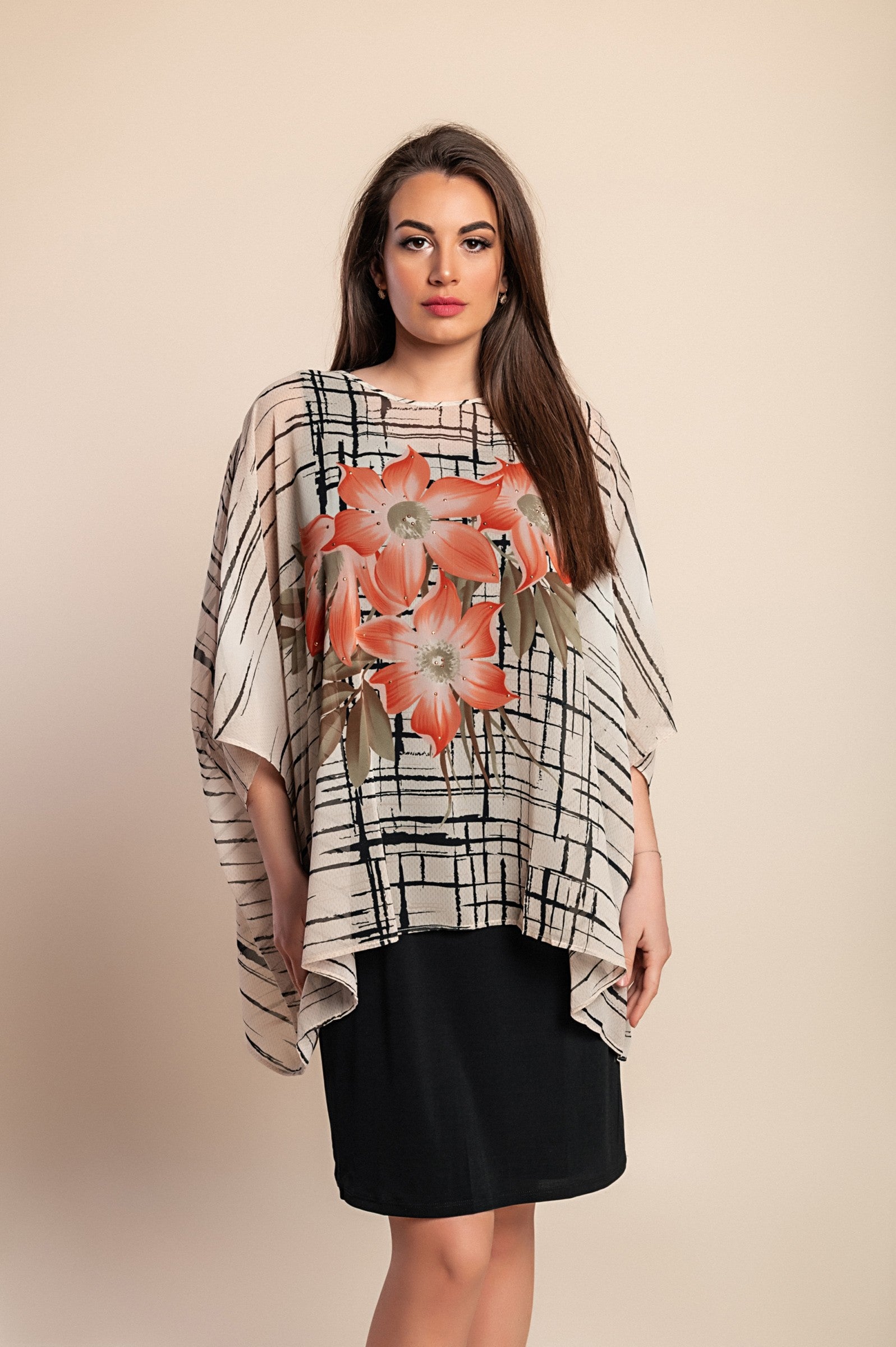 Abito stampato taglie forti, nero
