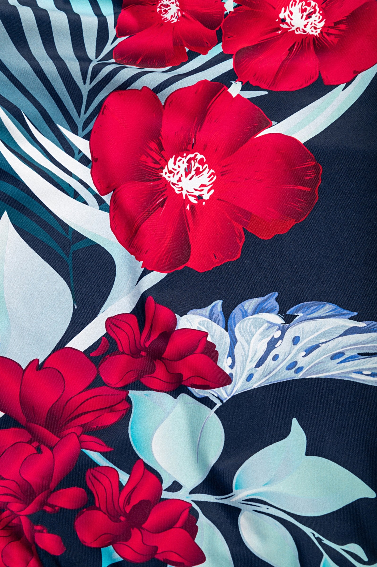 Costume da bagno taglie forti con stampa floreale, blu scuro