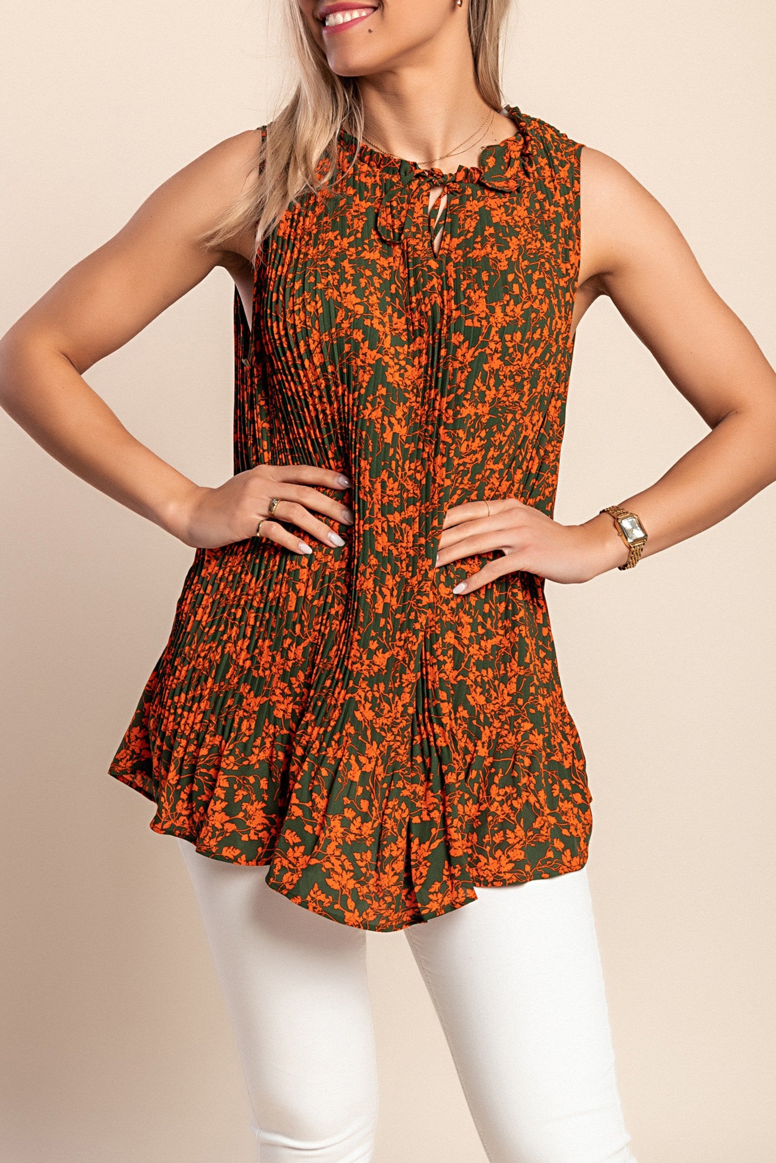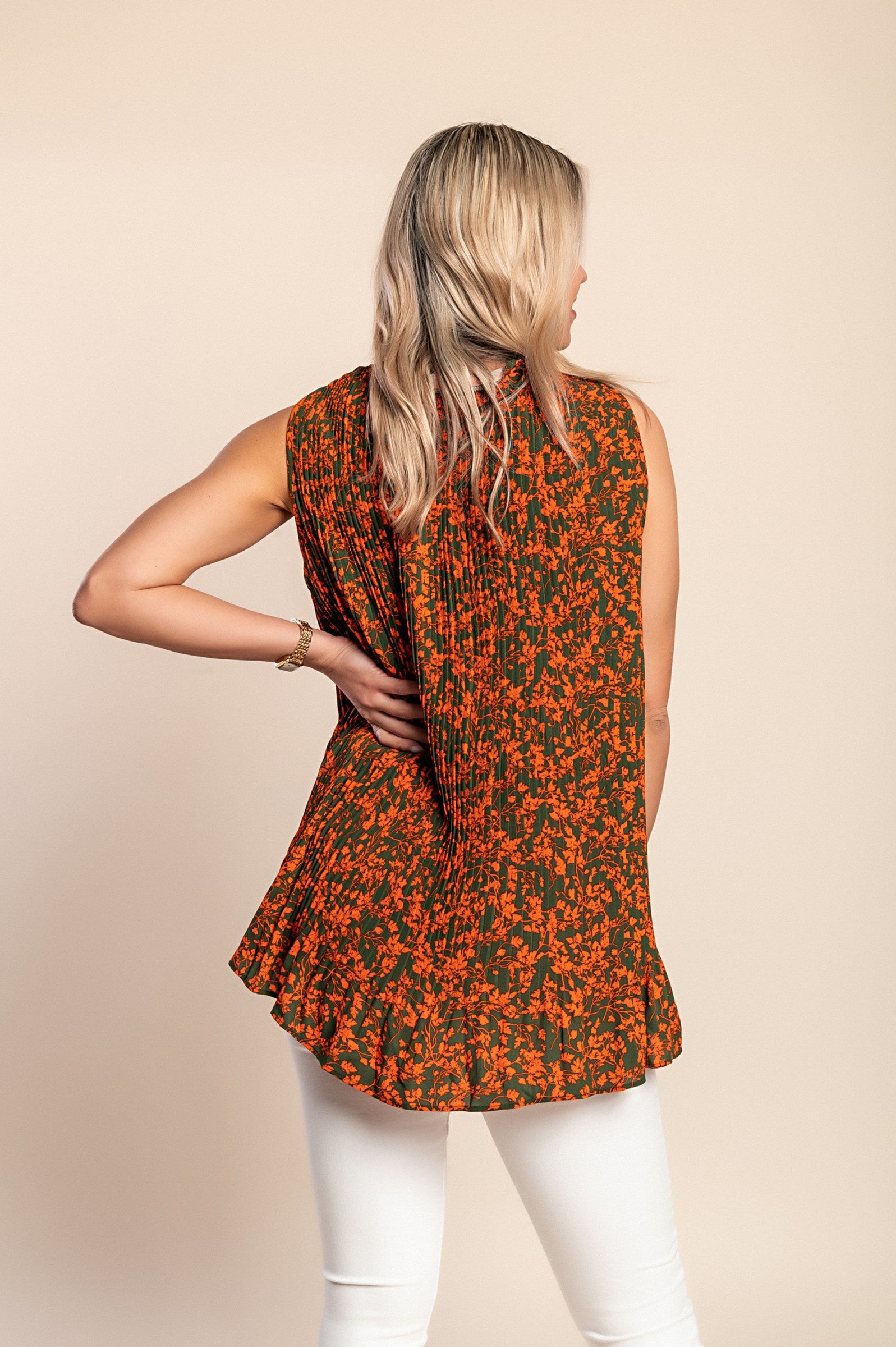Camicetta plissettata taglie forti con stampa, arancione