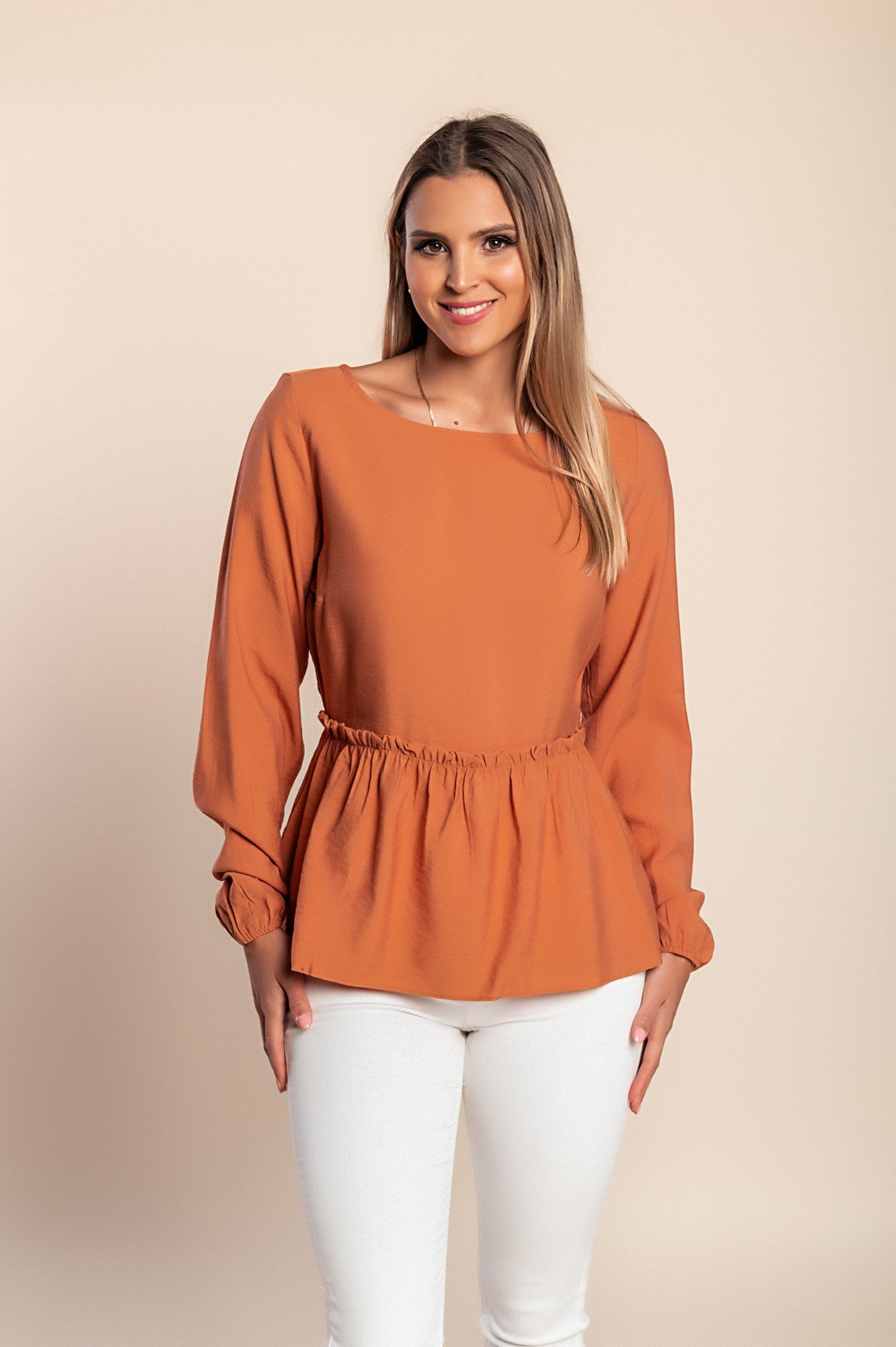 Camicetta a maniche lunghe taglie forti, mattone
