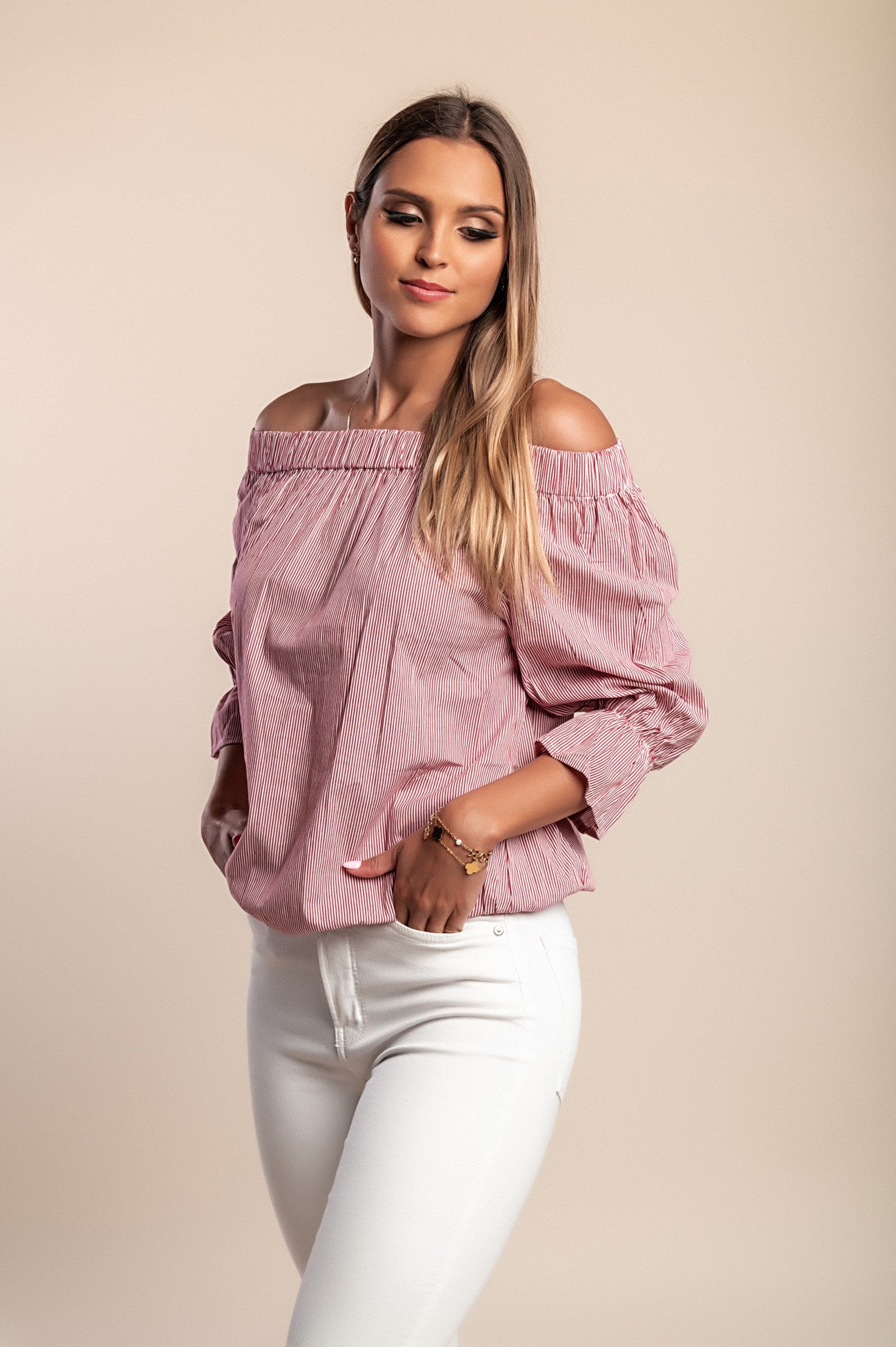 Camicetta con stampa a righe, rossa