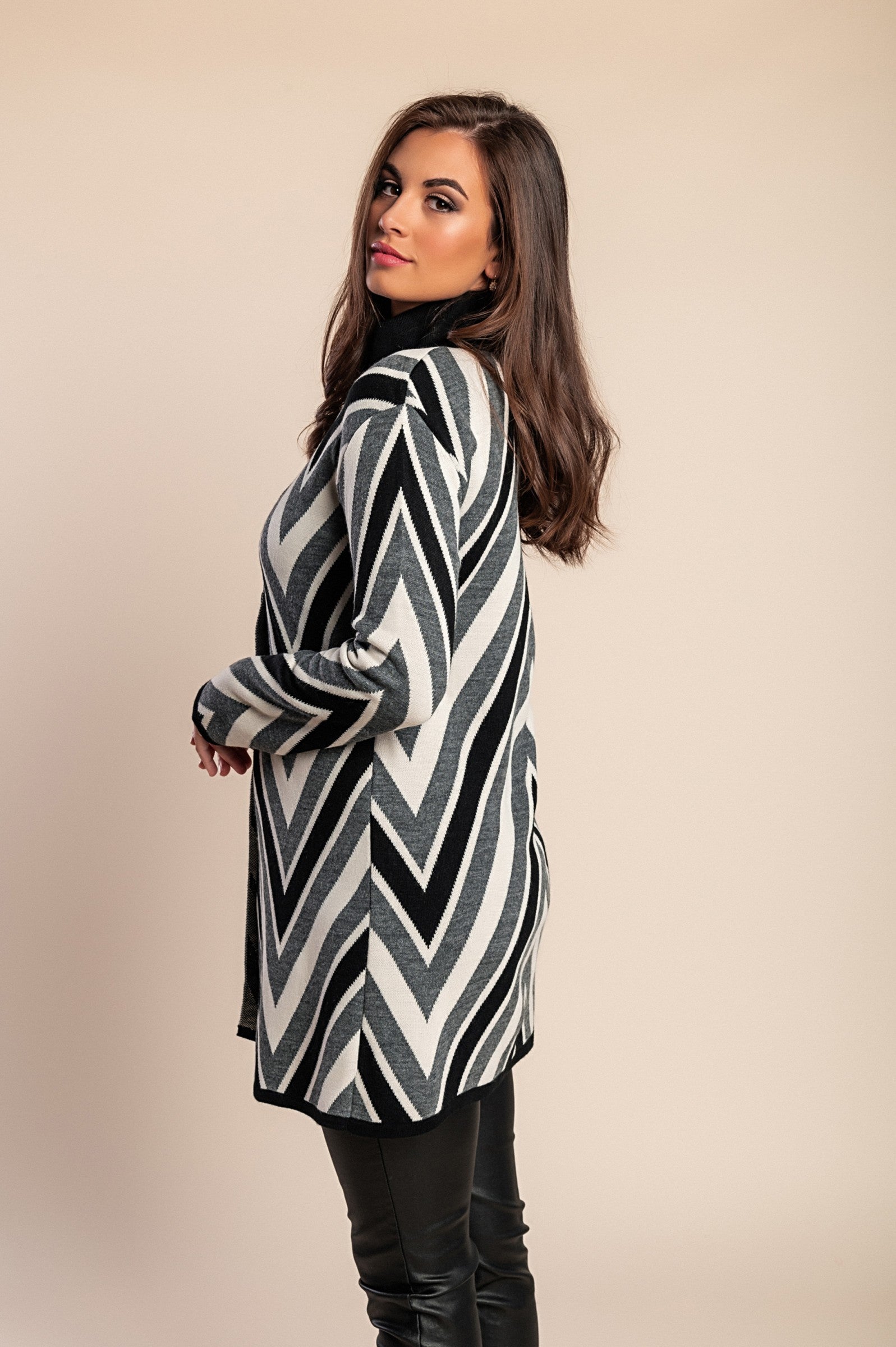 Cardigan in maglia stampata, colore grigio/nero/bianco