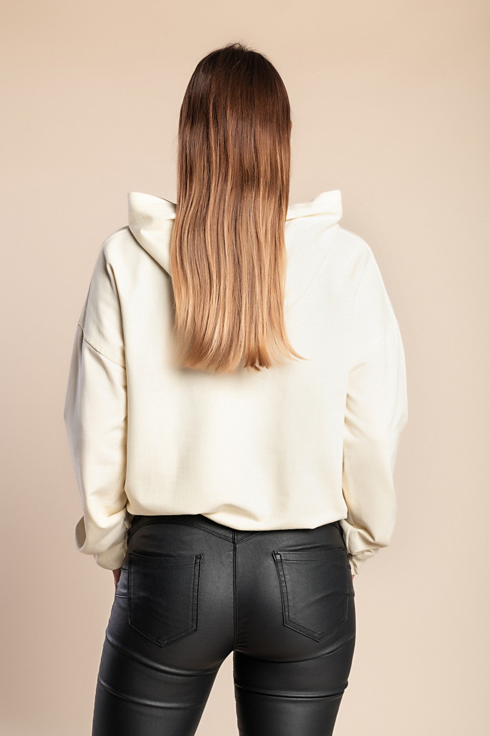 Maglietta con cappuccio e fantasia a quadri Denia, crema