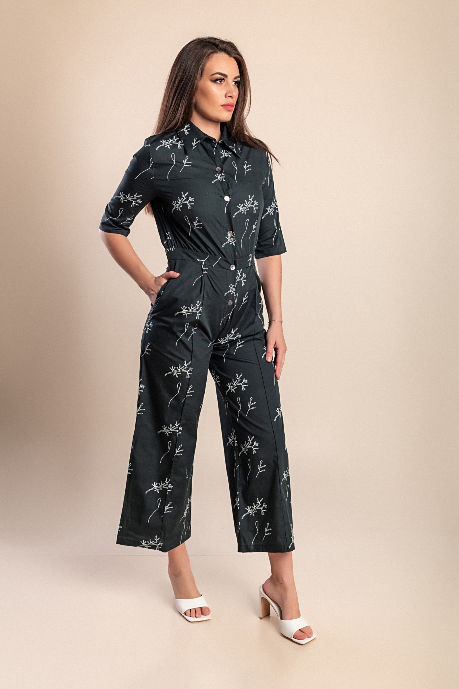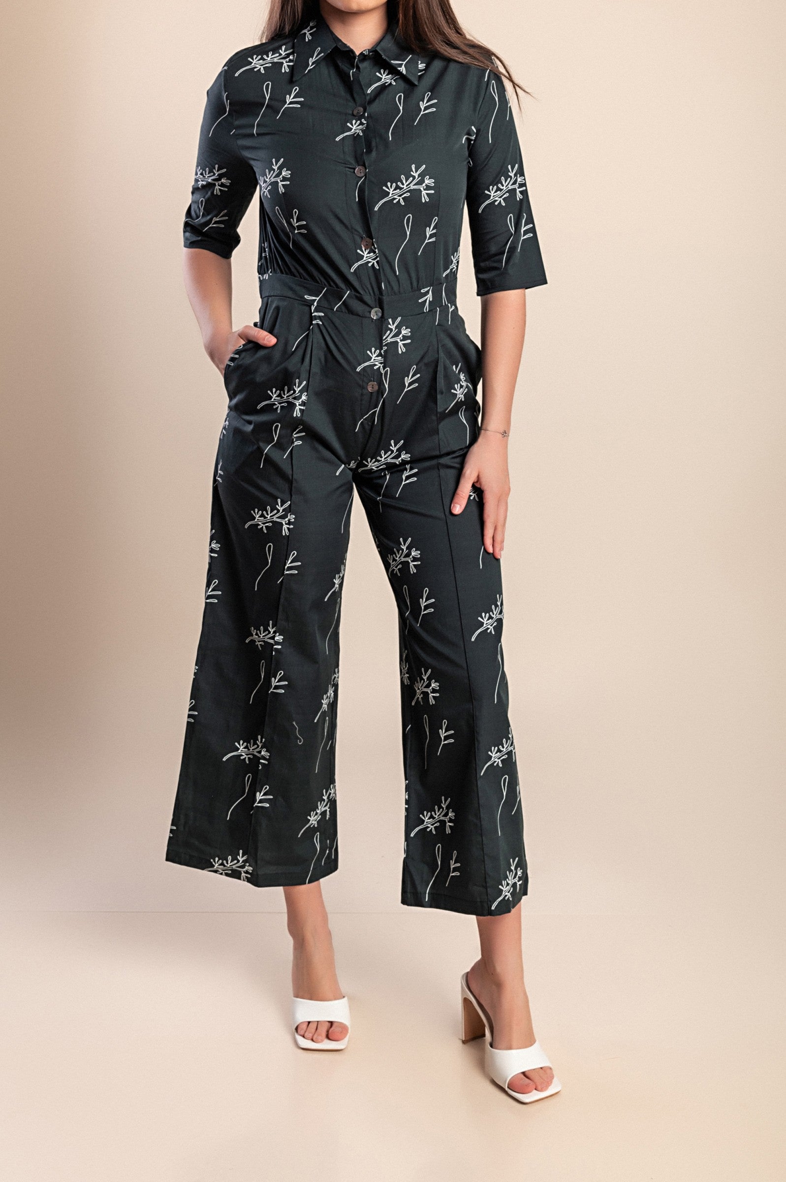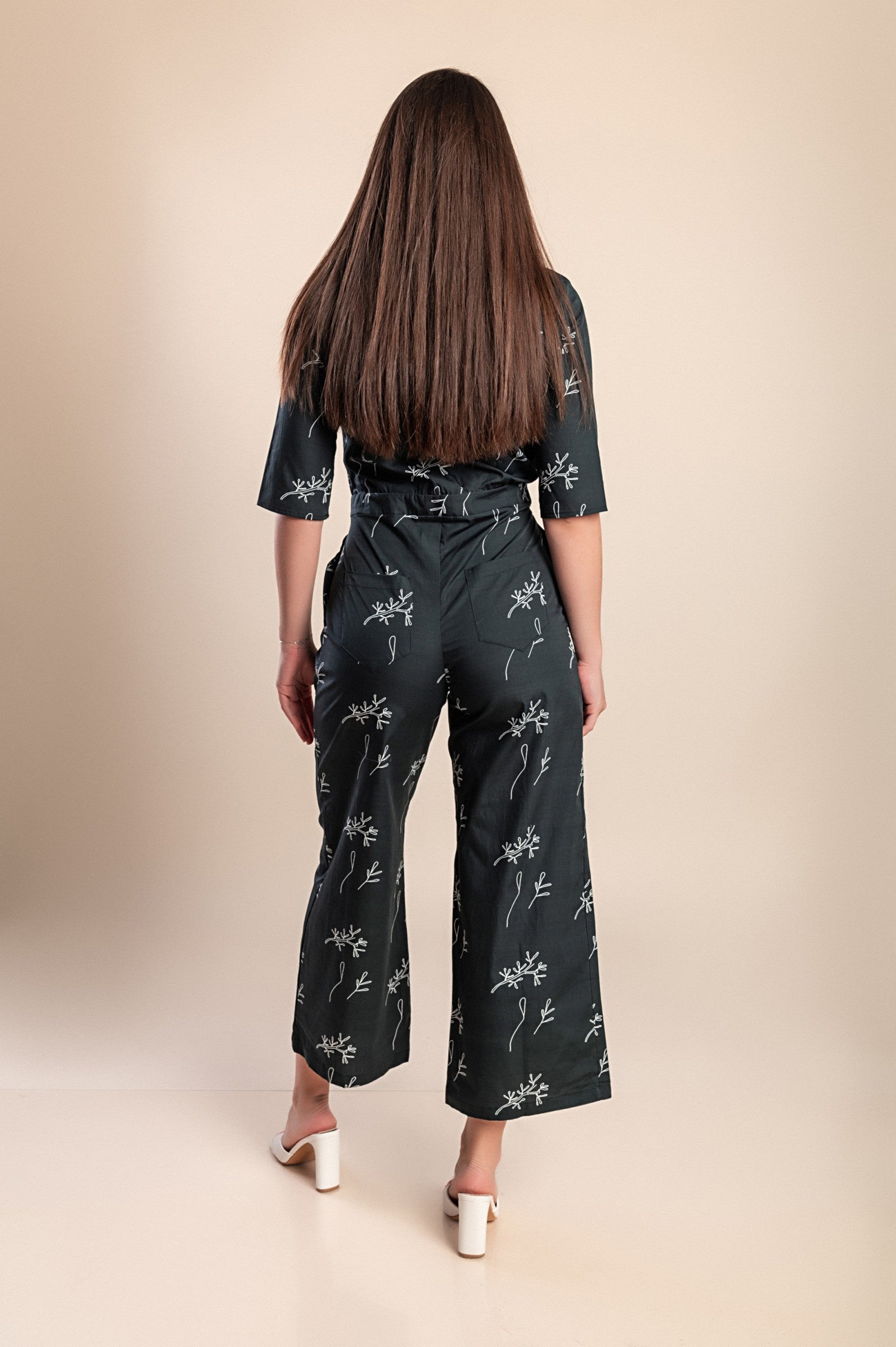 Tuta in cotone stampato, nera