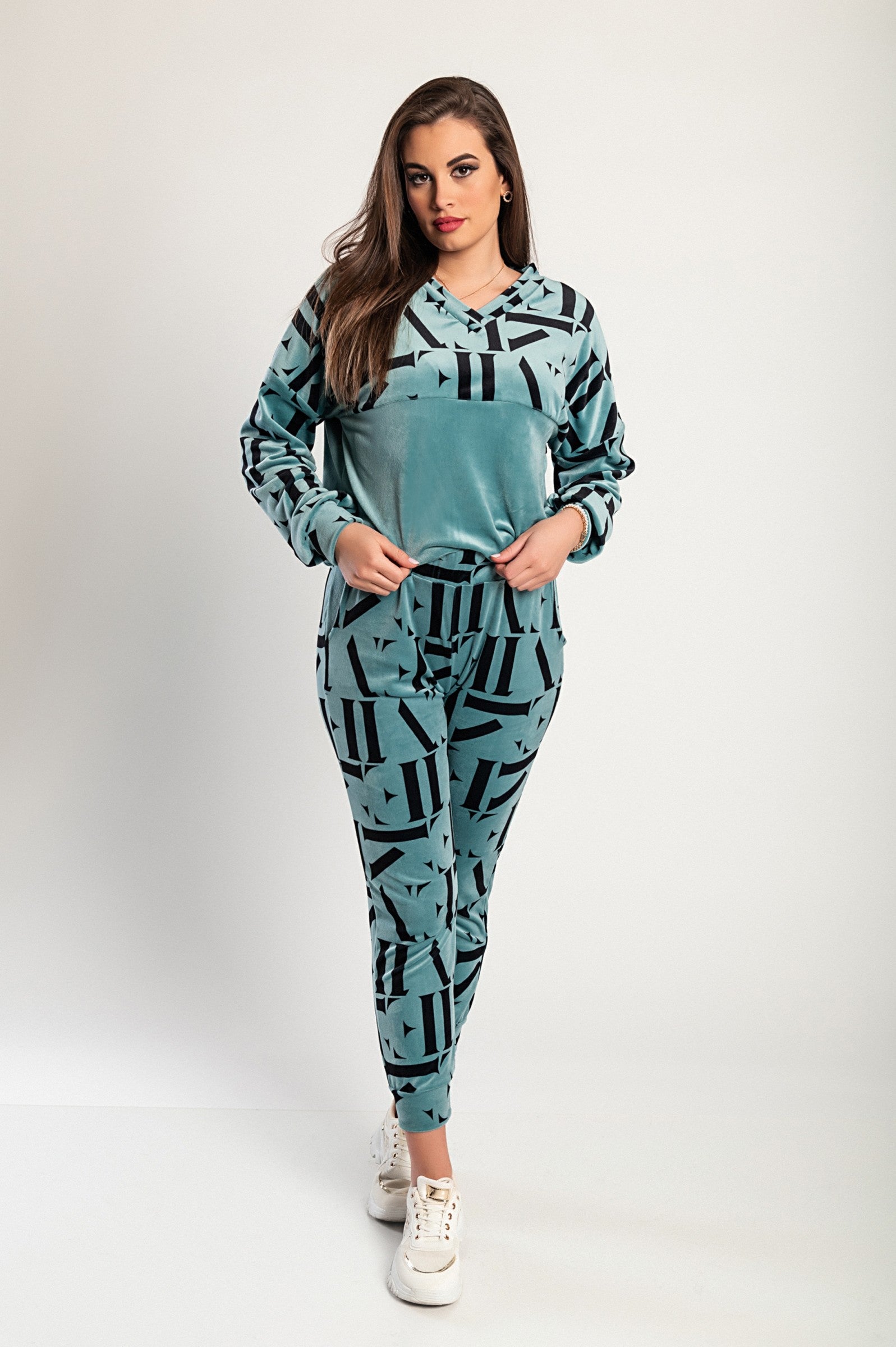 Tuta in finto velluto con stampa di lettere Laureta, Menta