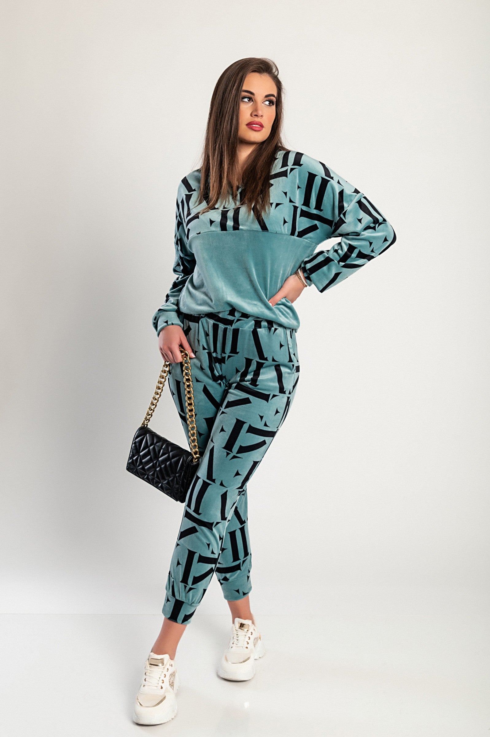 Tuta in finto velluto con stampa di lettere Laureta, Menta