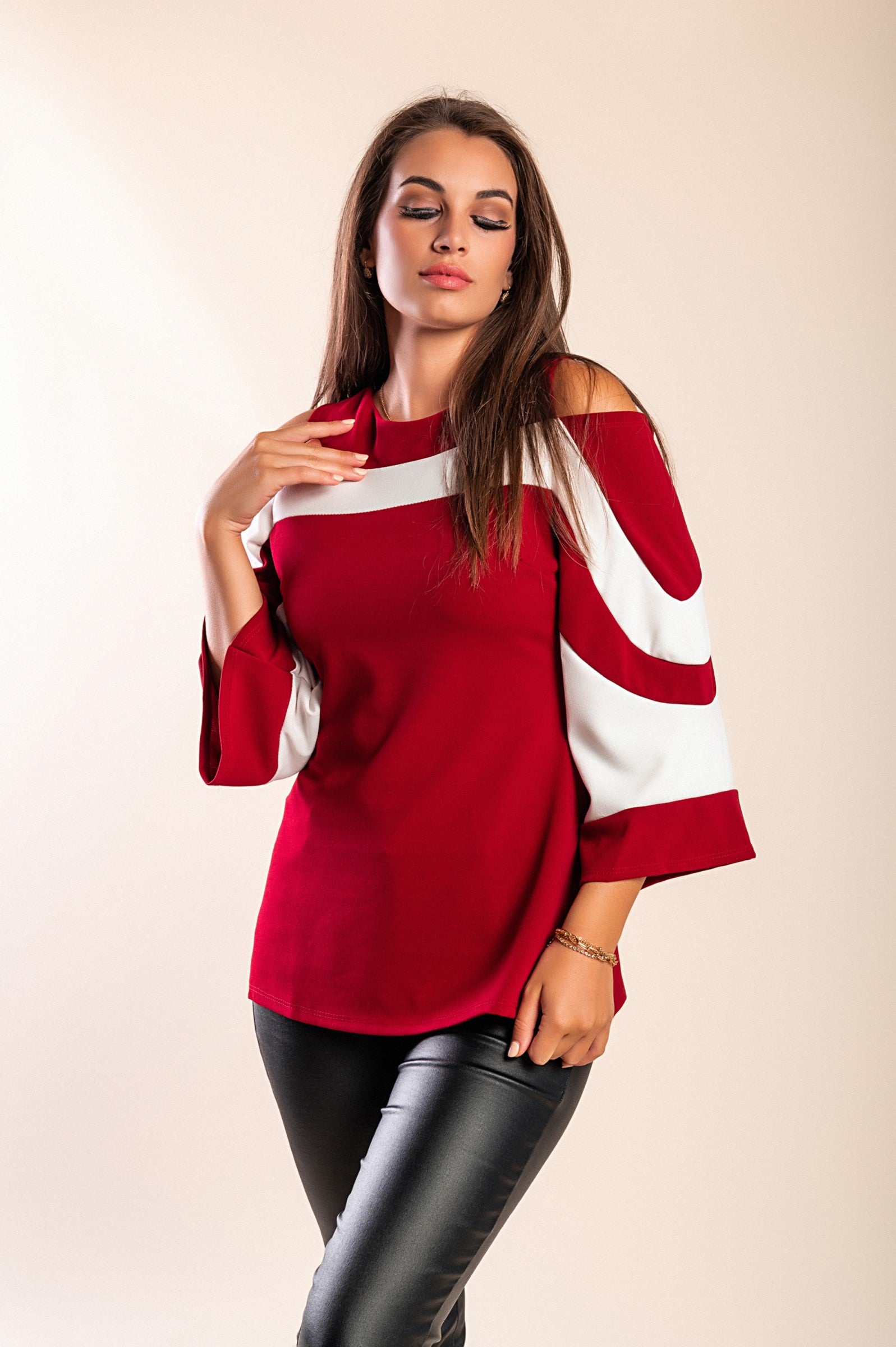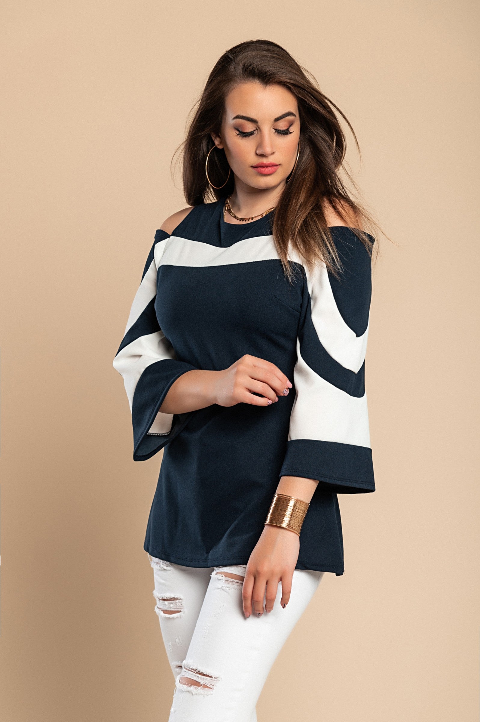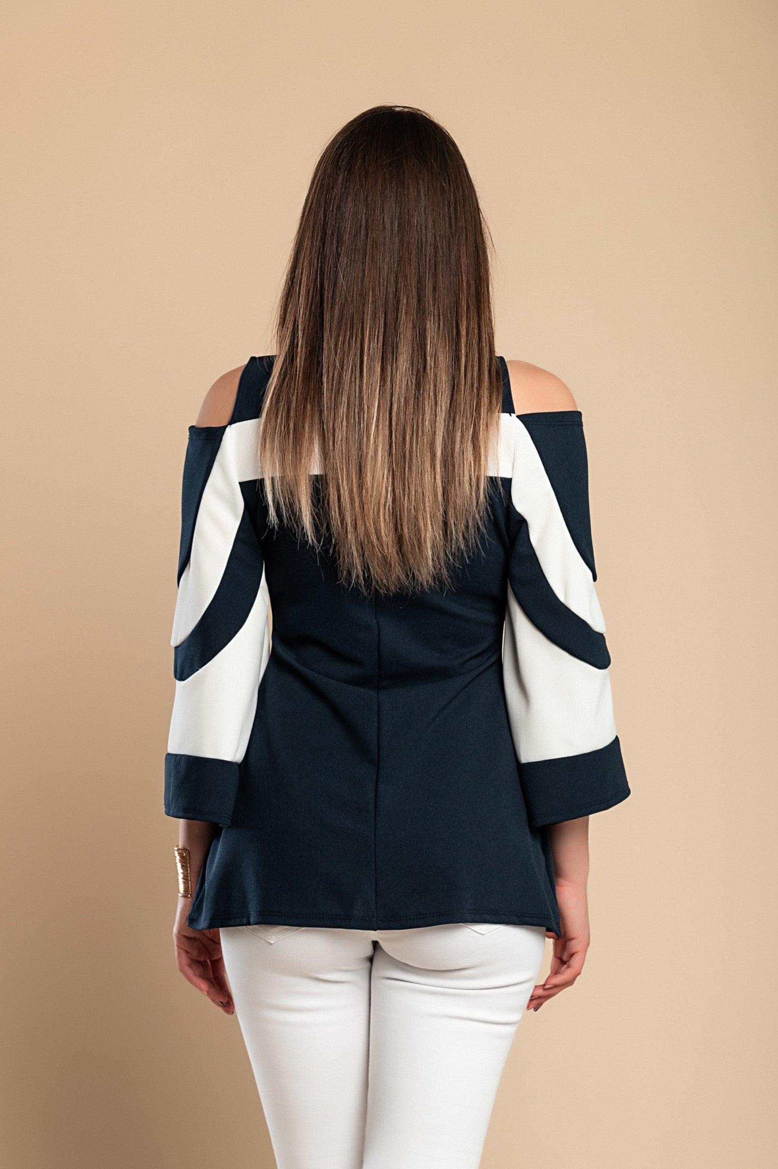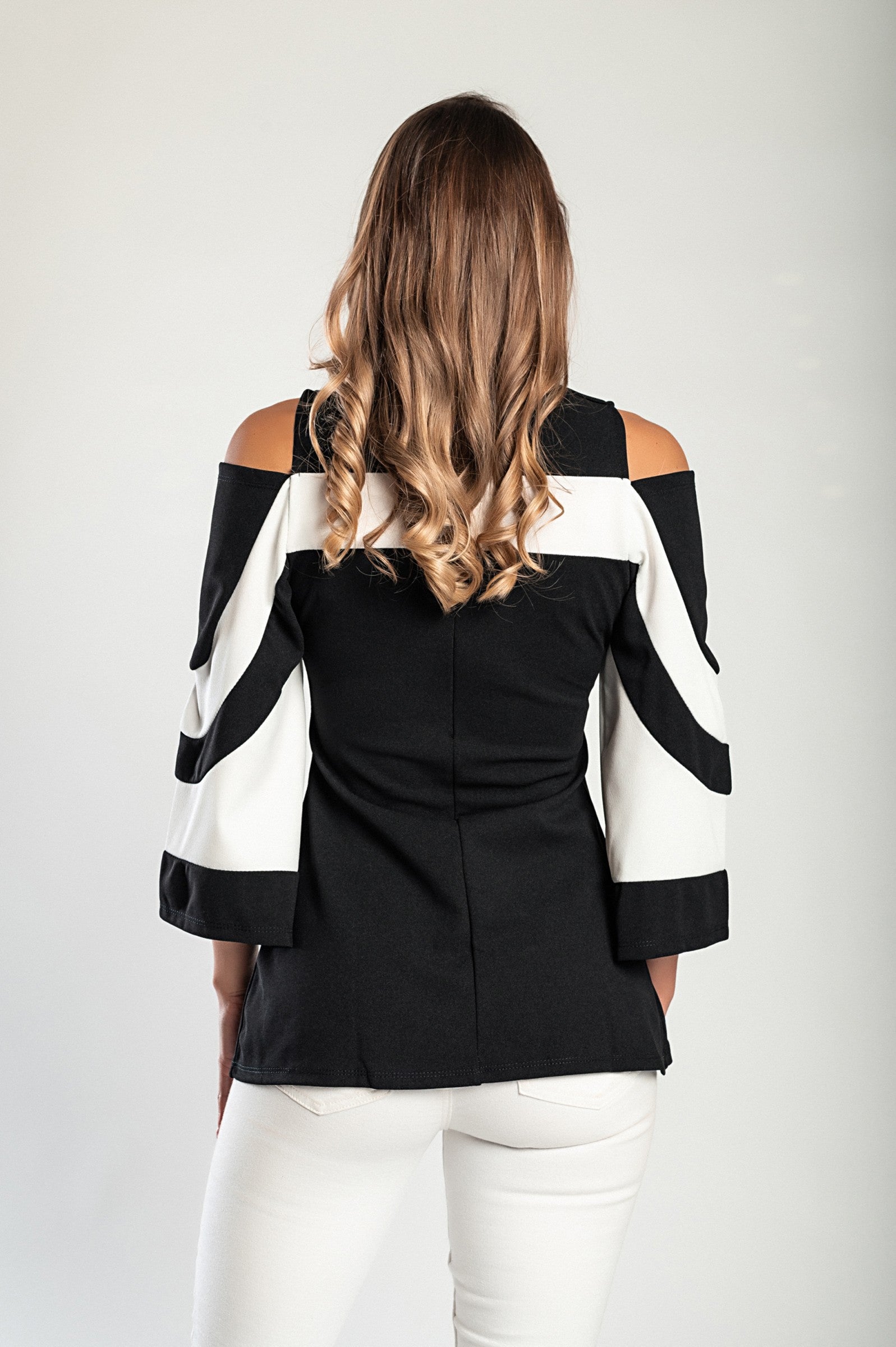 Manica a 3/4 a campana in una moderna combinazione bianco-nero.