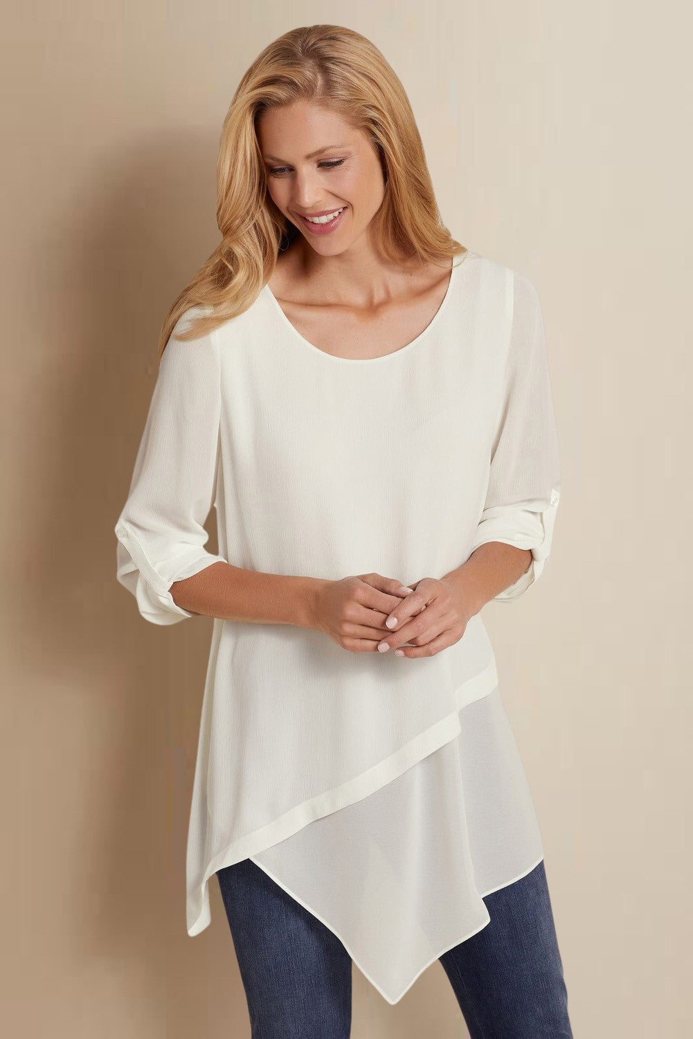 Tunica asimmetrica, leggera e molto piacevole adatta per ogni occasione della giornata.