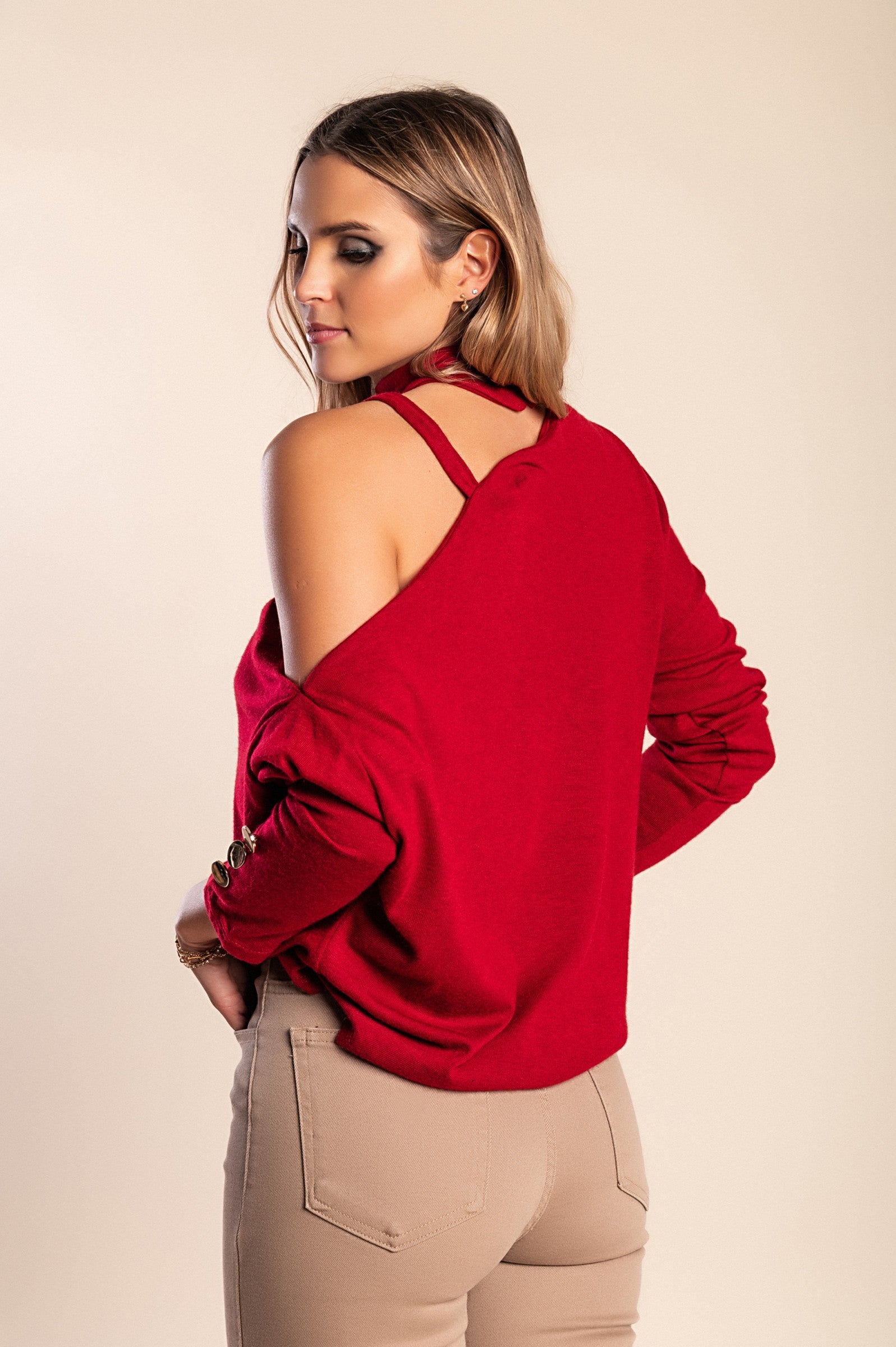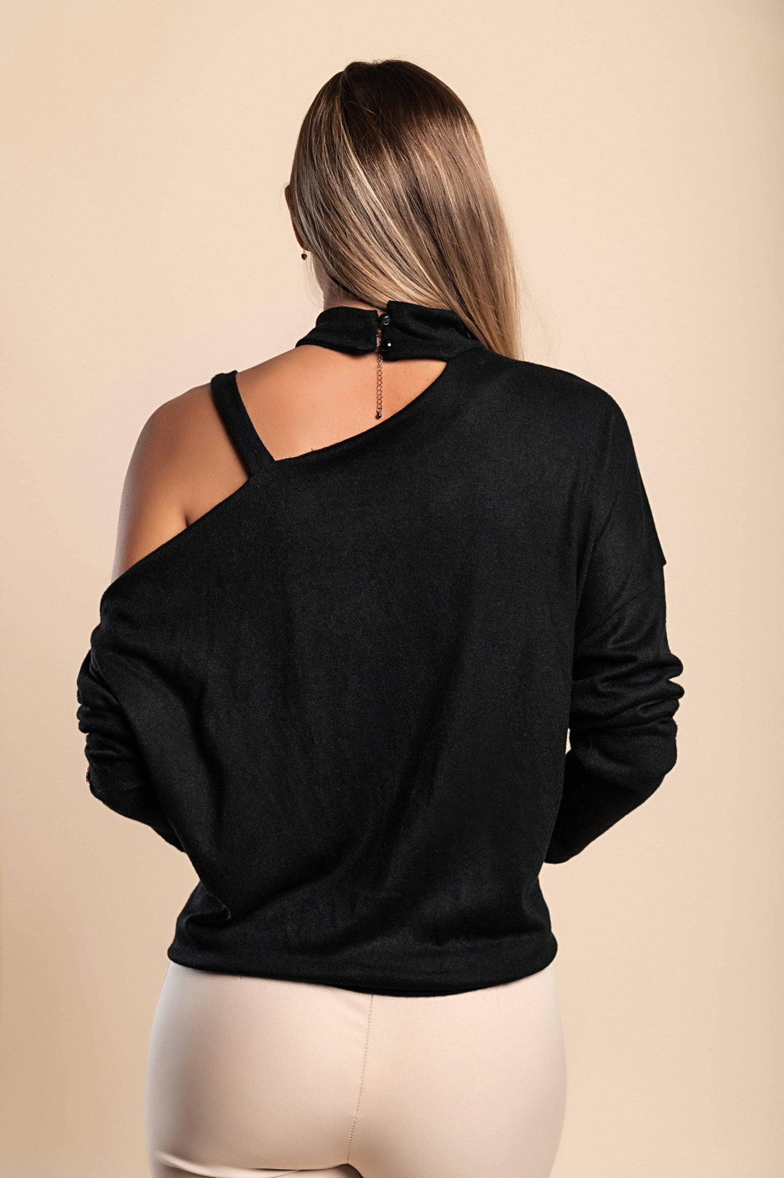 Scollo asimmetrico con cinturino con dettaglio in metallo.
