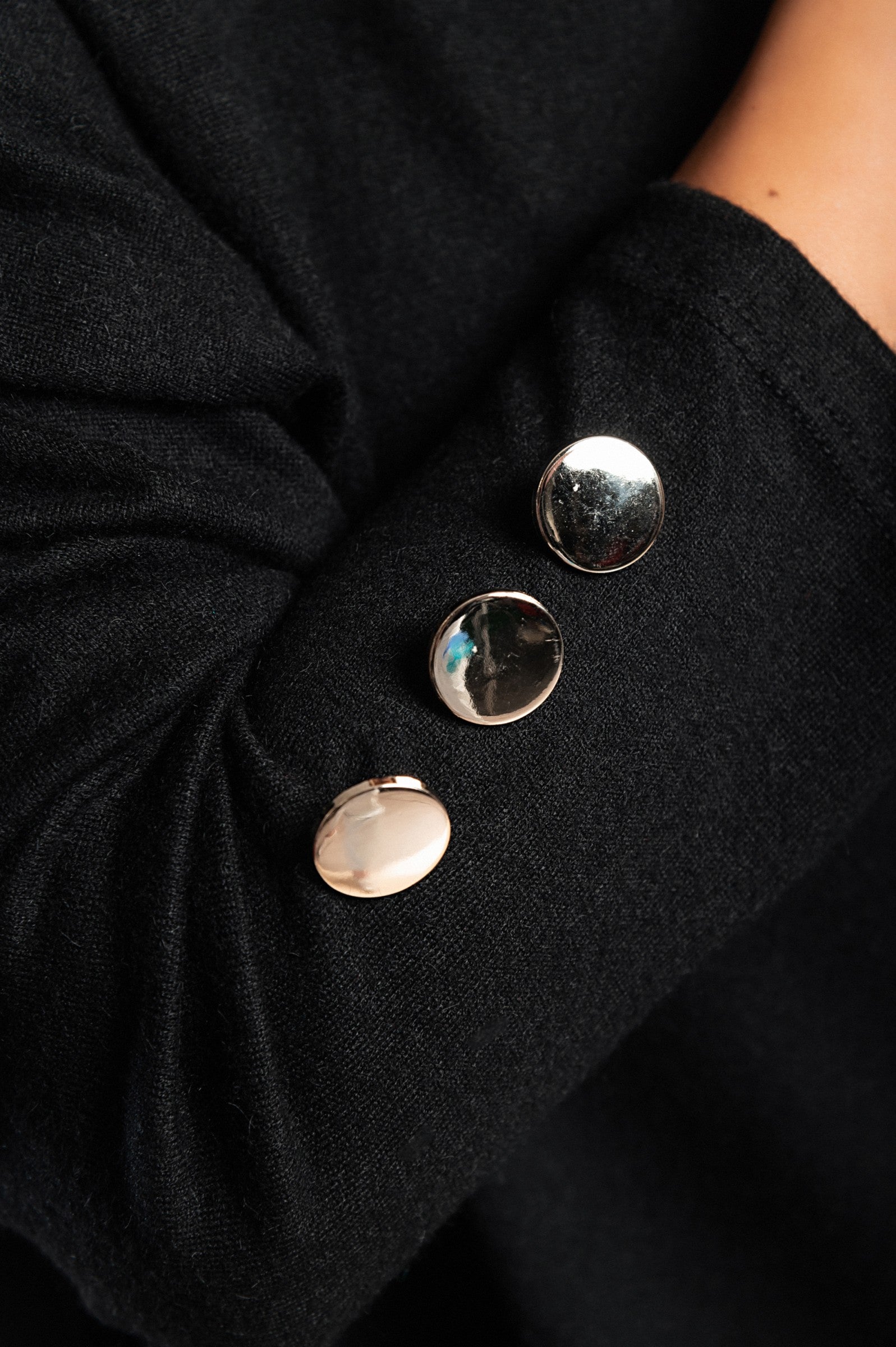 Maniche lunghe pressate ai polsi, con bottoni decorativi.