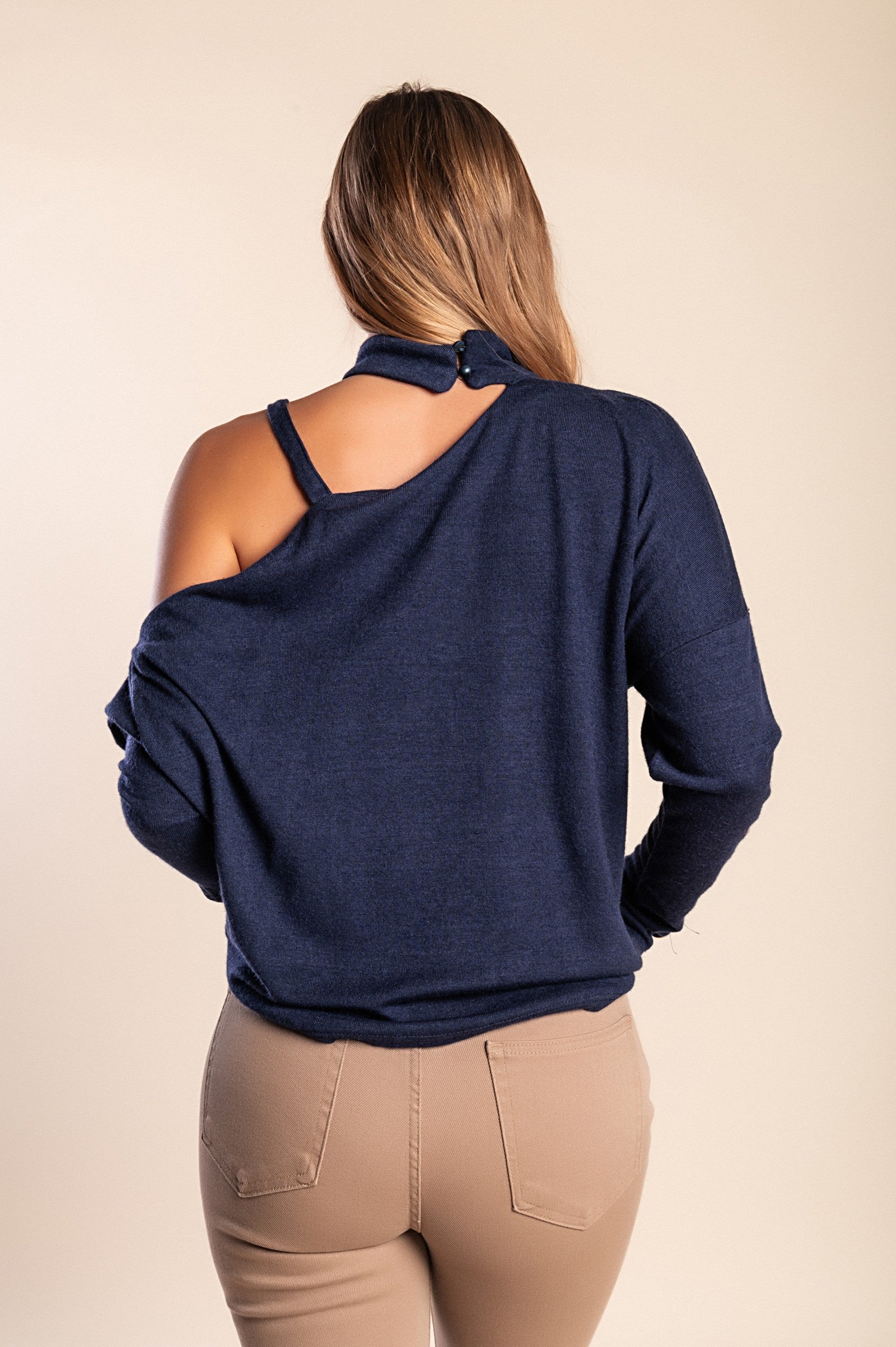 Maglietta elegante con scollo asimmetrico Mirabelle, beige