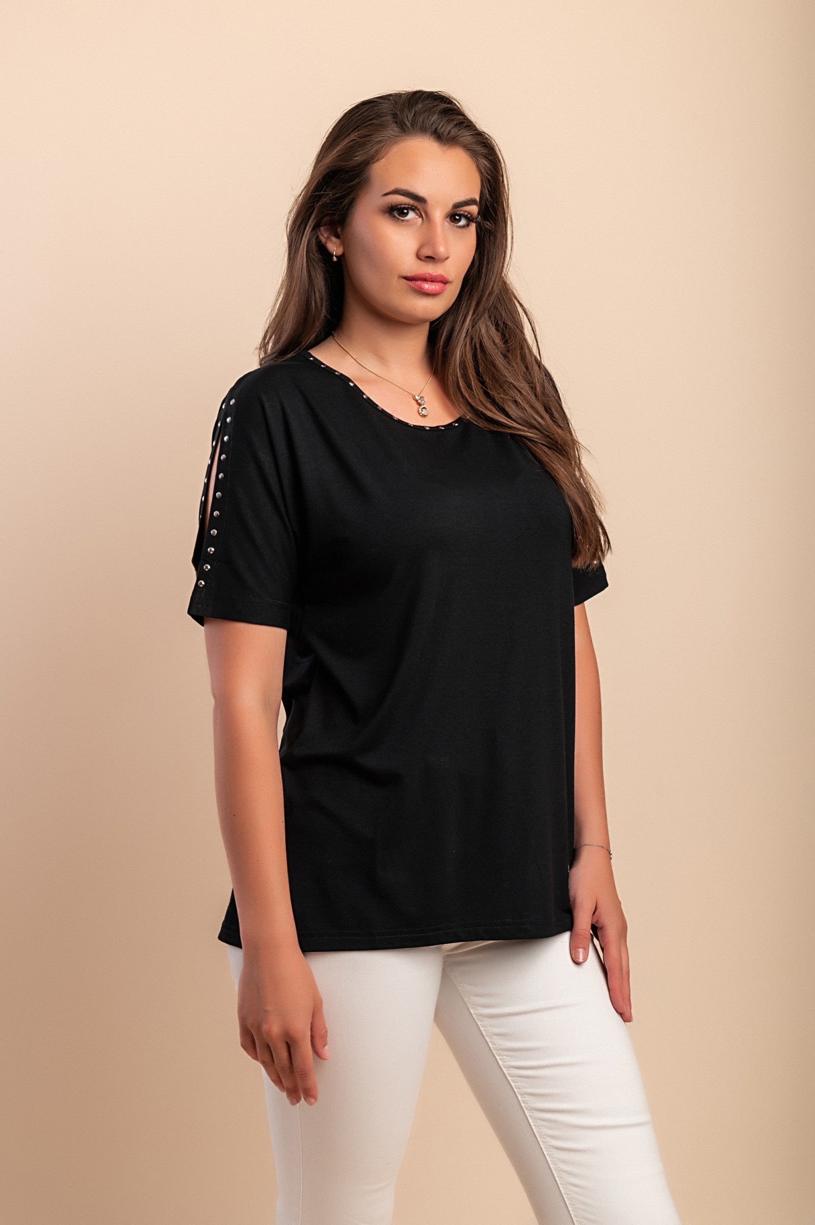 Maglietta con rivetti decorativi, nera
