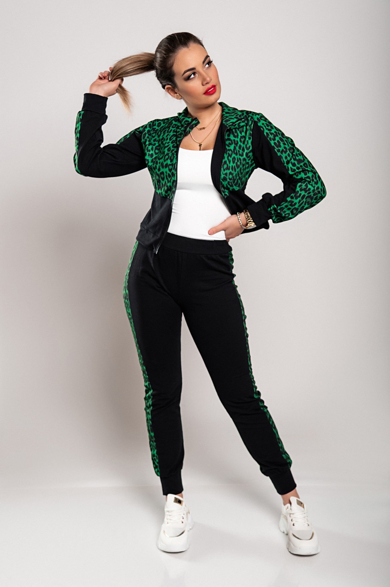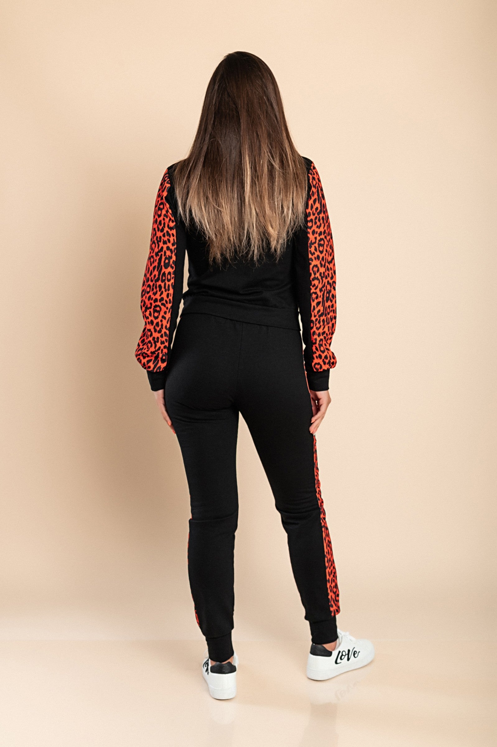 Pantaloni lunghi, aderenti, a vita alta con due righe bianche sui fianchi.